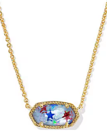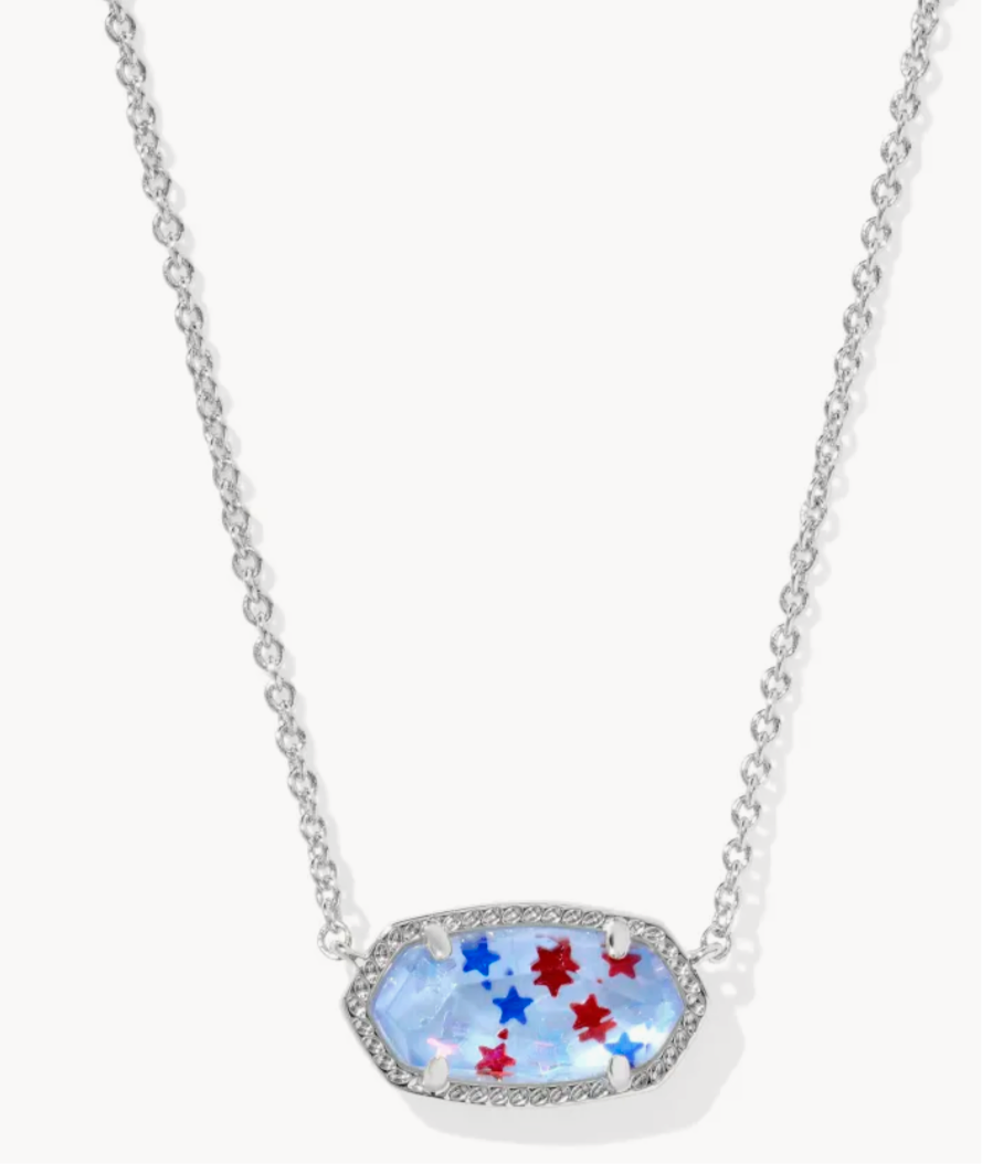 A dainty stone and delicate metallic chain combine to create the Elisa Silver/Gold Pendant Necklace in Red White Blue Star Illusion, your new favorite wear-anywhere accessory. This pendant necklace can be paired with any look, providing that extra touch of timeless style. Make the Elisa Pendant Necklace a staple in your wardrobe and you will not be disappointed.