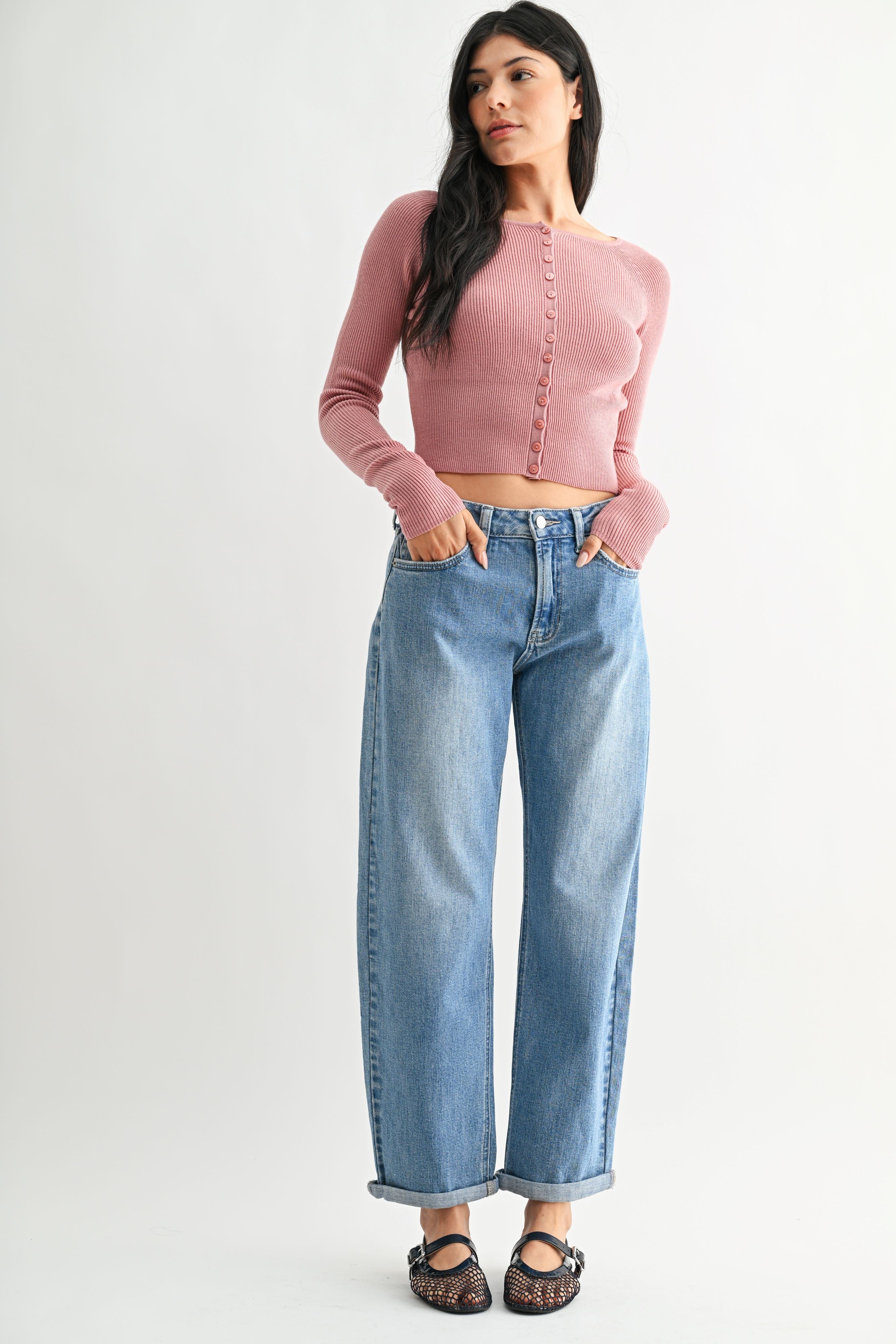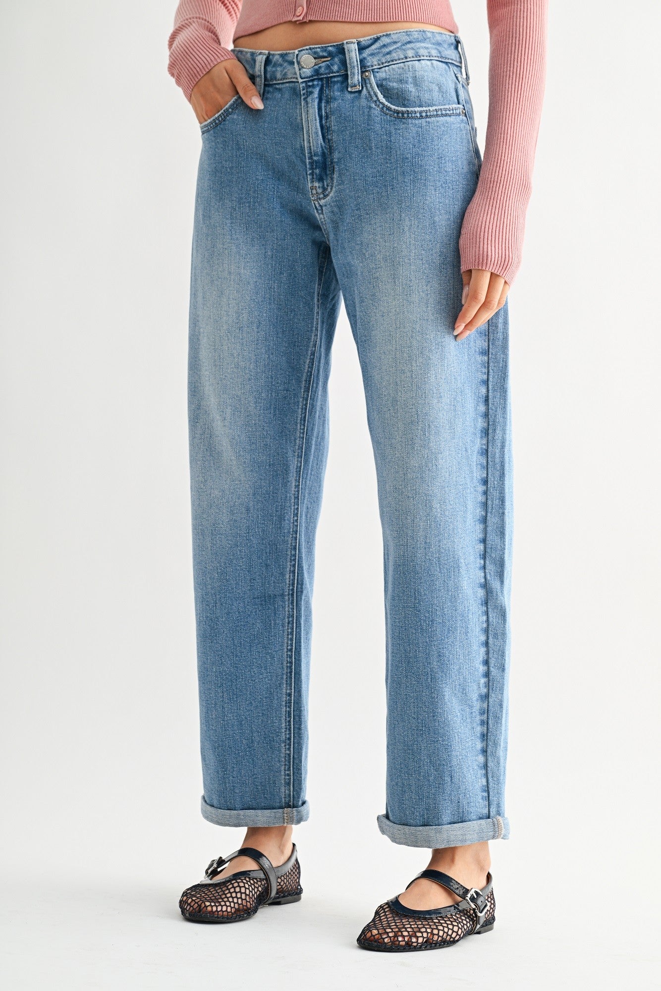 The slim stretch light denim barrel cuff jean is a go to perfect denim for everyday! No distressing