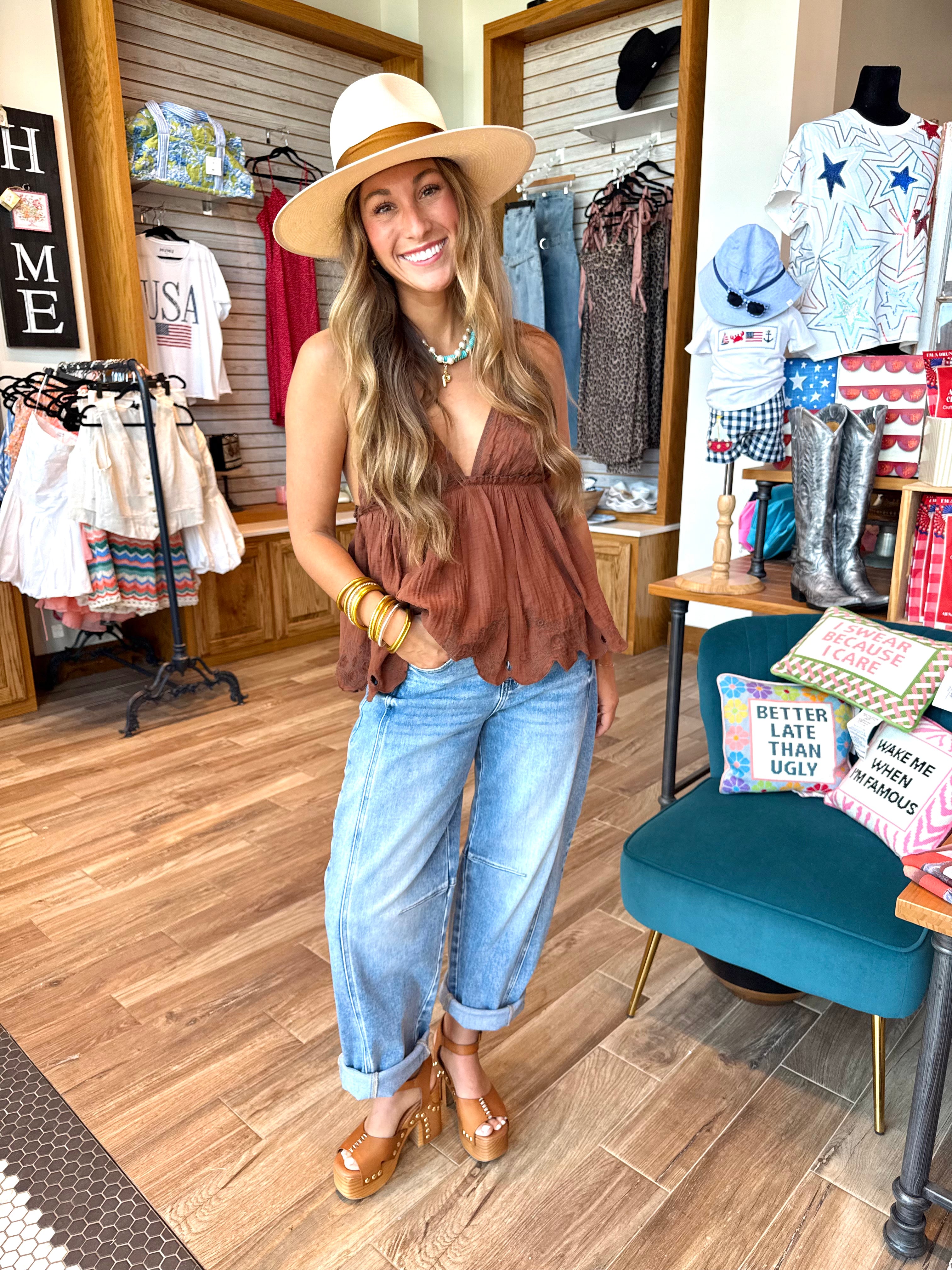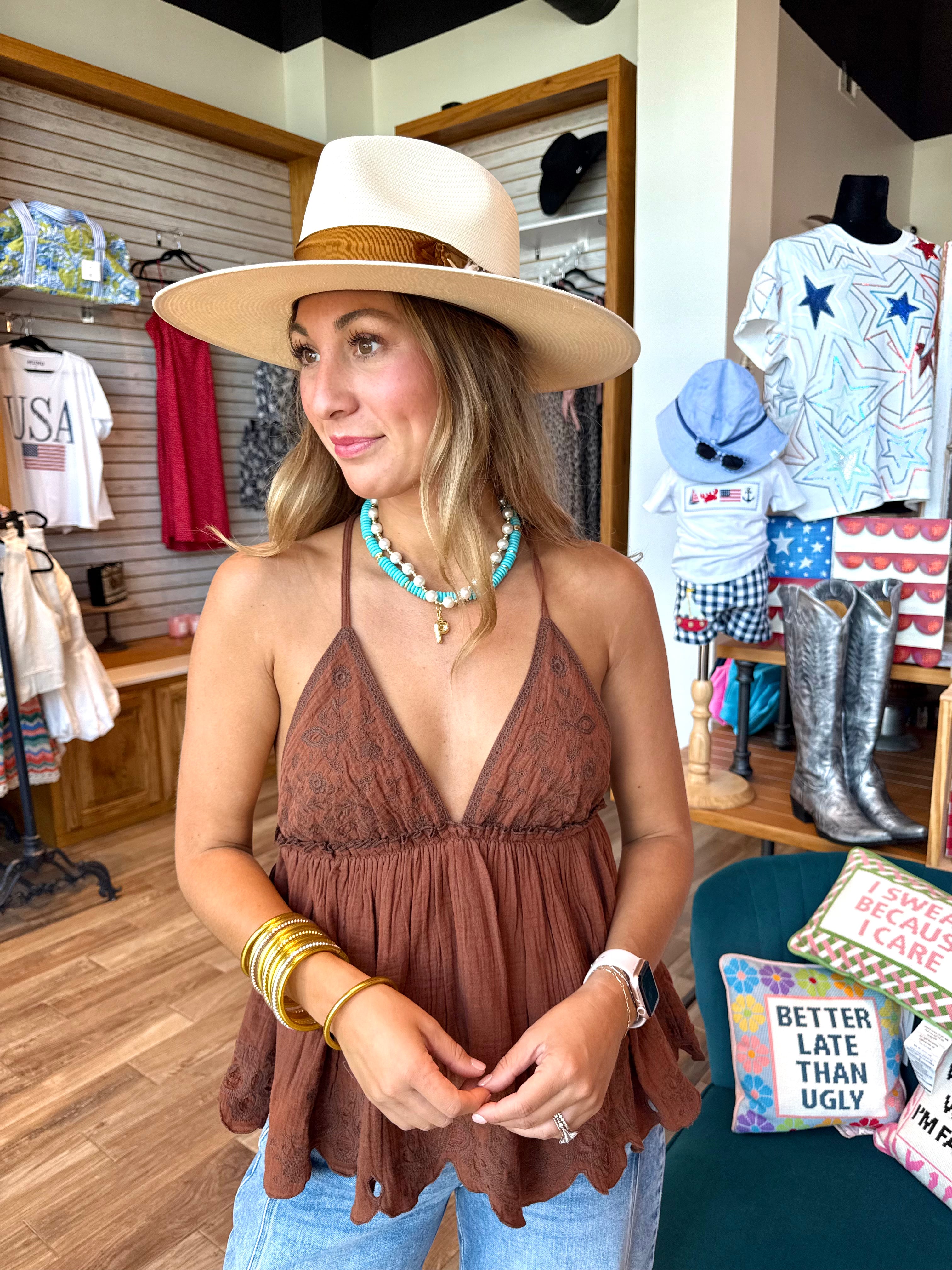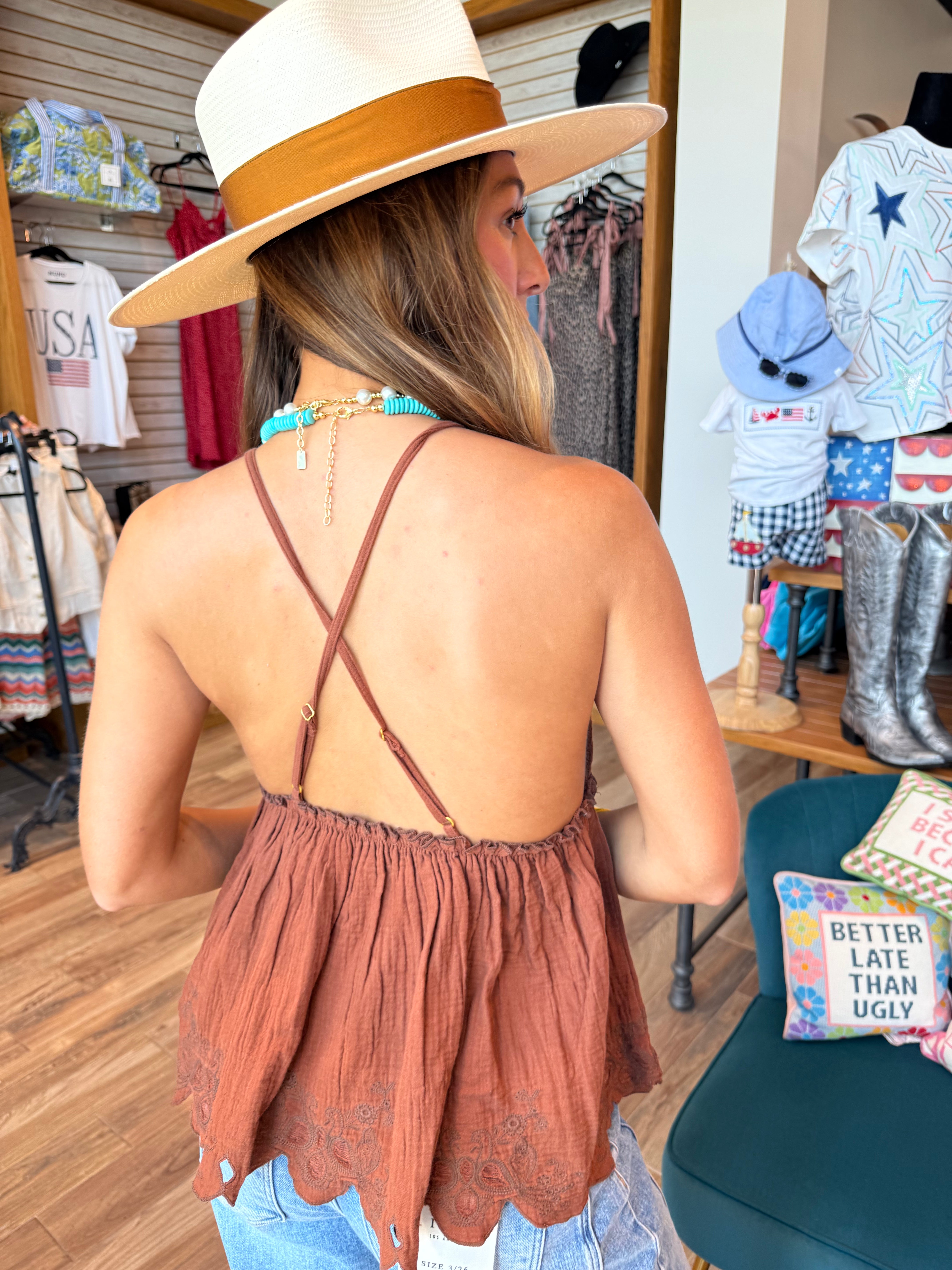Forever femme and flirty, this super cute cami is featured in a V-neck silhouette with criss-cross straps at back and embroidered lace detailing throughout for the sweetest finishing touch.