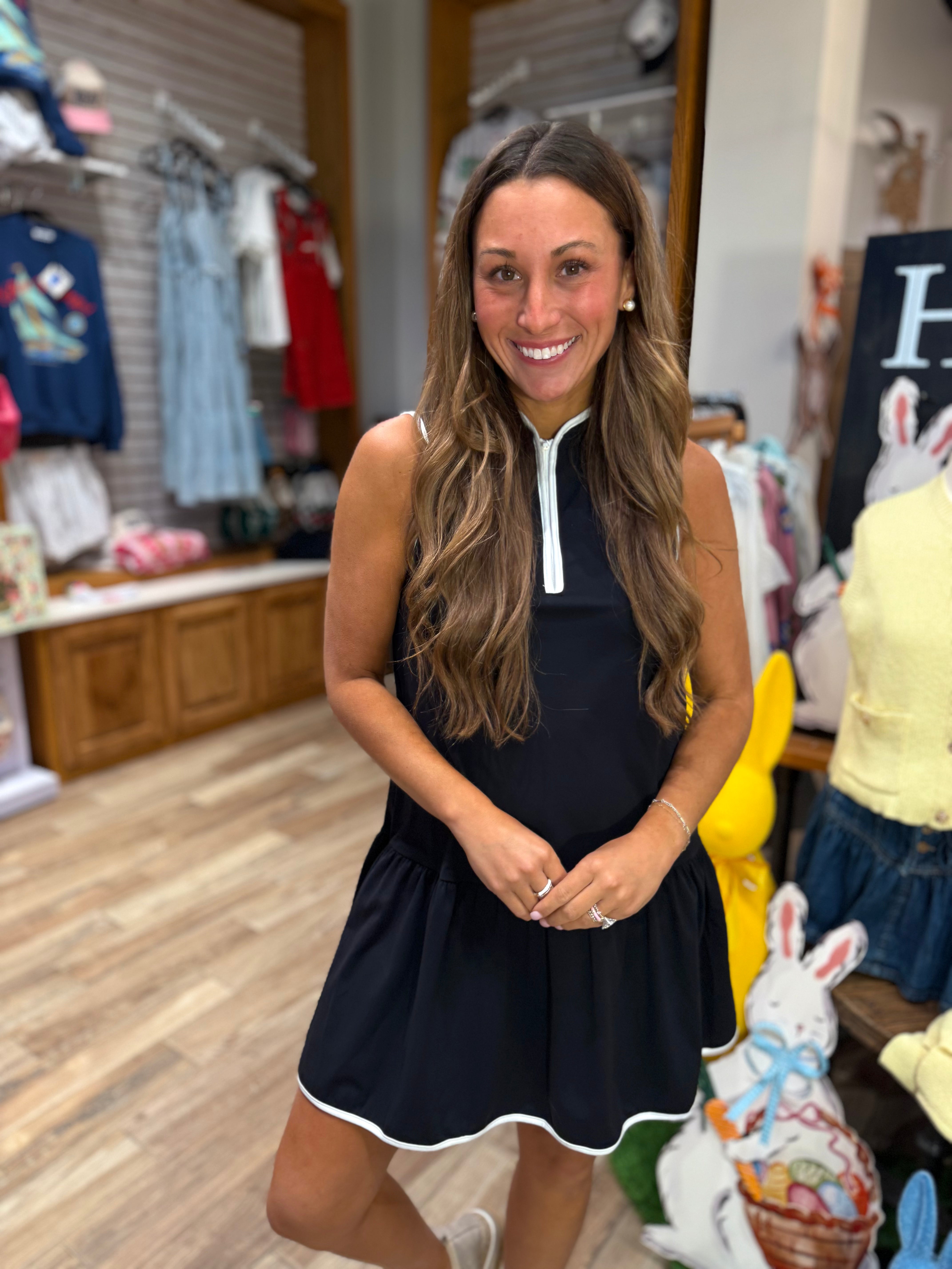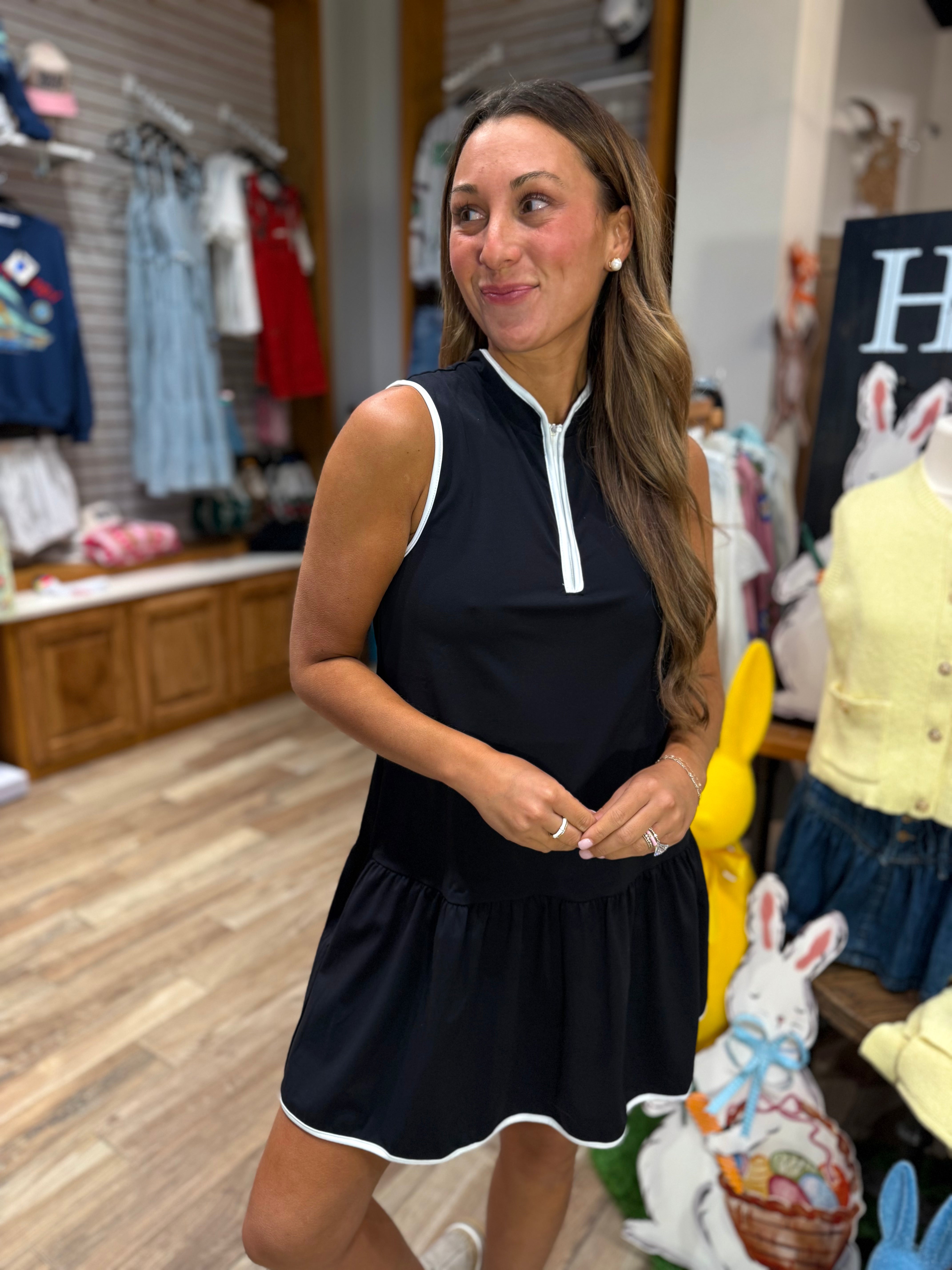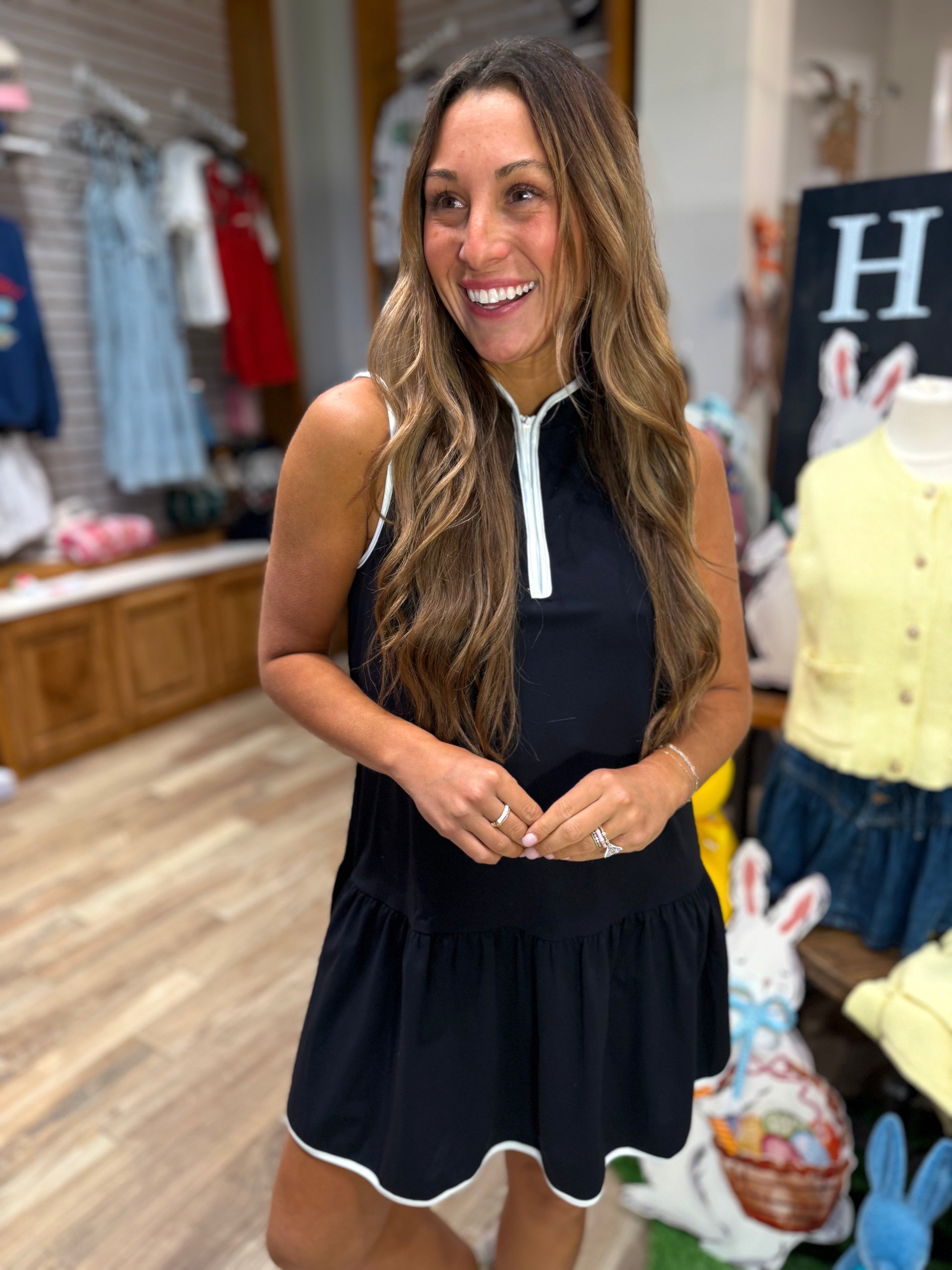 The Nova Tennis dress is the perfect on the go dress with built in shorts with a side pocket and 3/4 zip top!