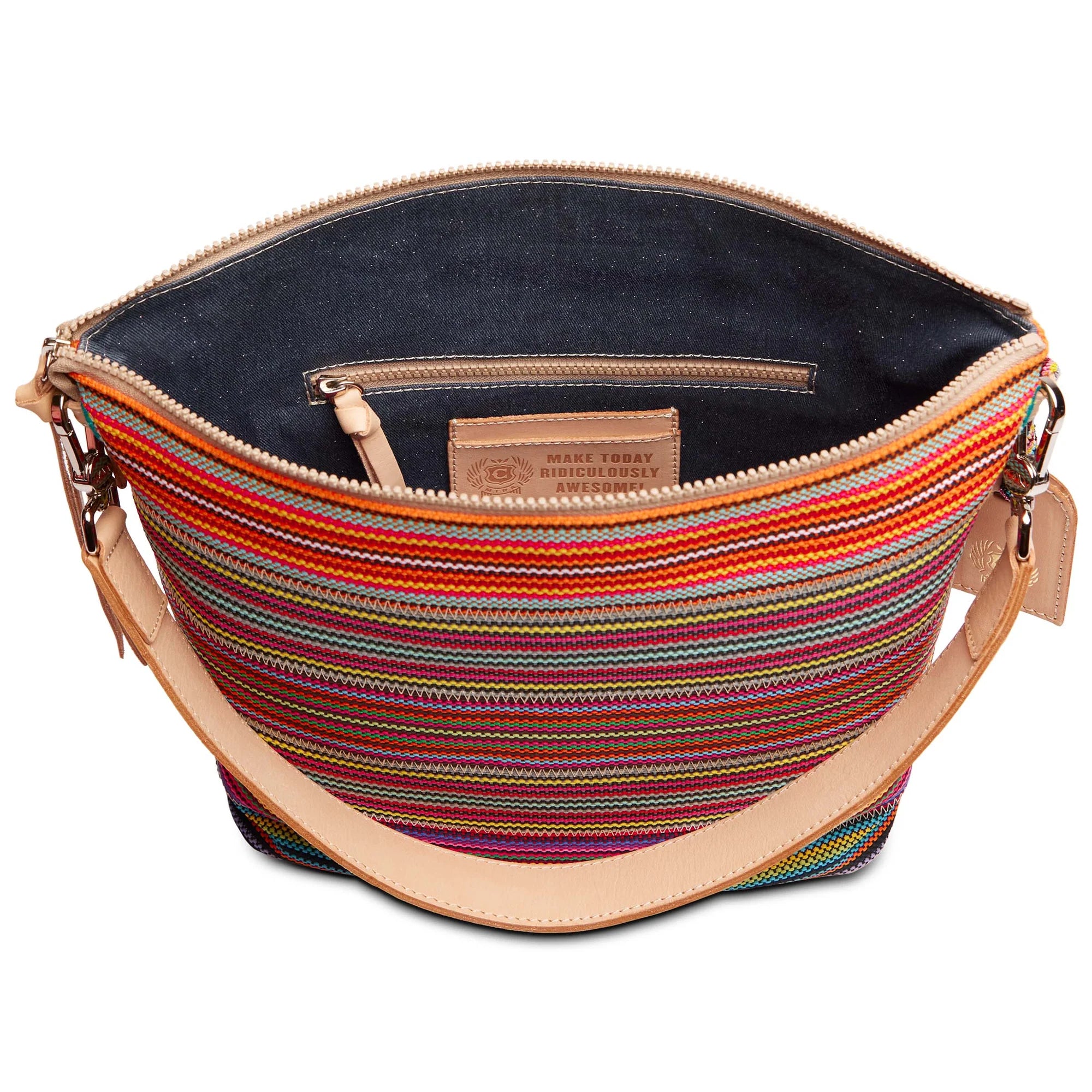 The Hobo is a convertible crossbody or shoulder bag with two included straps. This multicolored bag comfortably carries the essentials and much more. Perfect for those who like to be prepared for anything and everything!