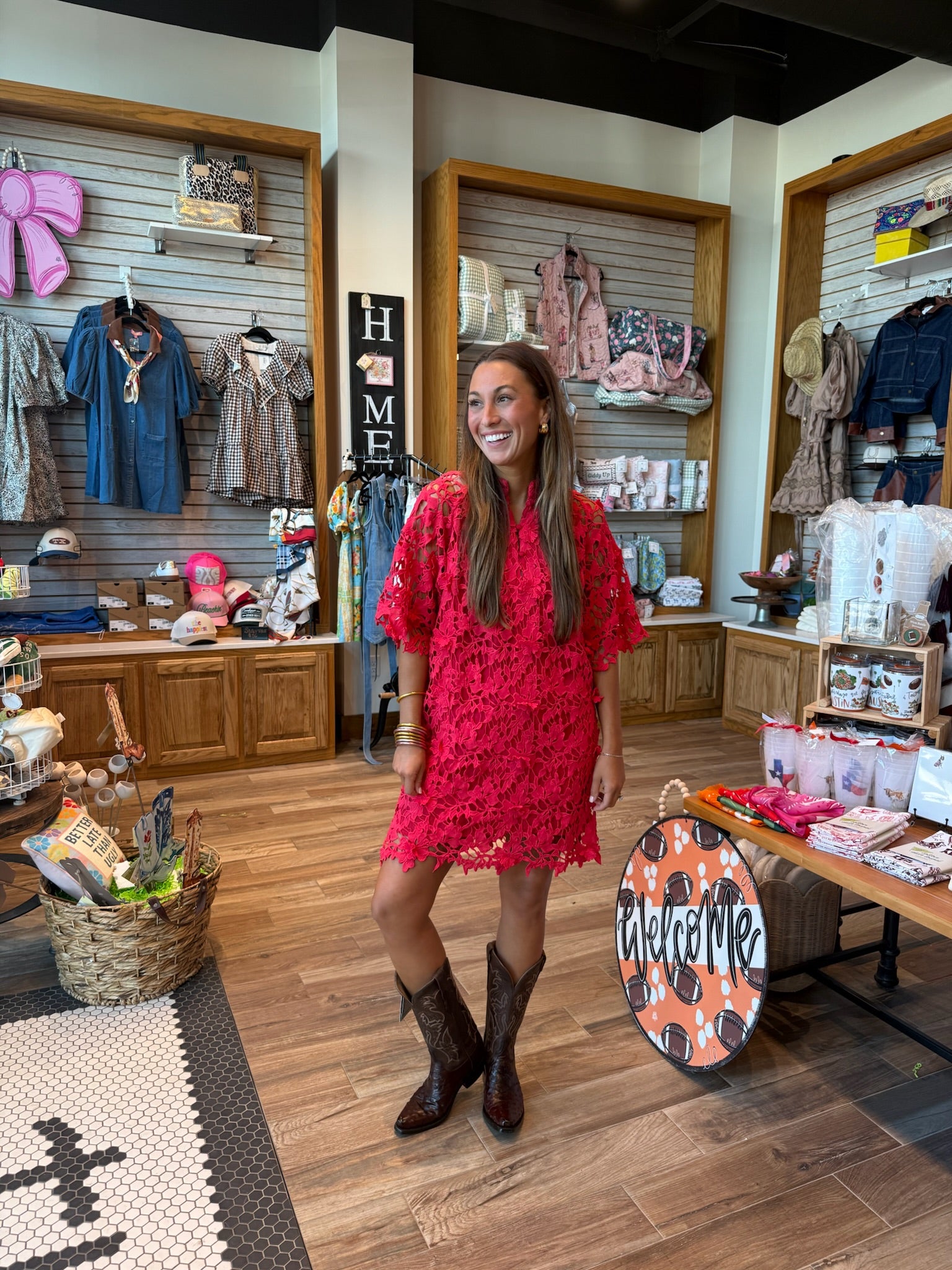 Slip into the Lulu Dress and shine! This brand new silhouette is a BuddyLove take on neutral, with a touch of delicate lace! Featuring a classic V-neck and wide short sleeves that compliment any figure. Pair her with heels for a night out and stand out from the crowd!