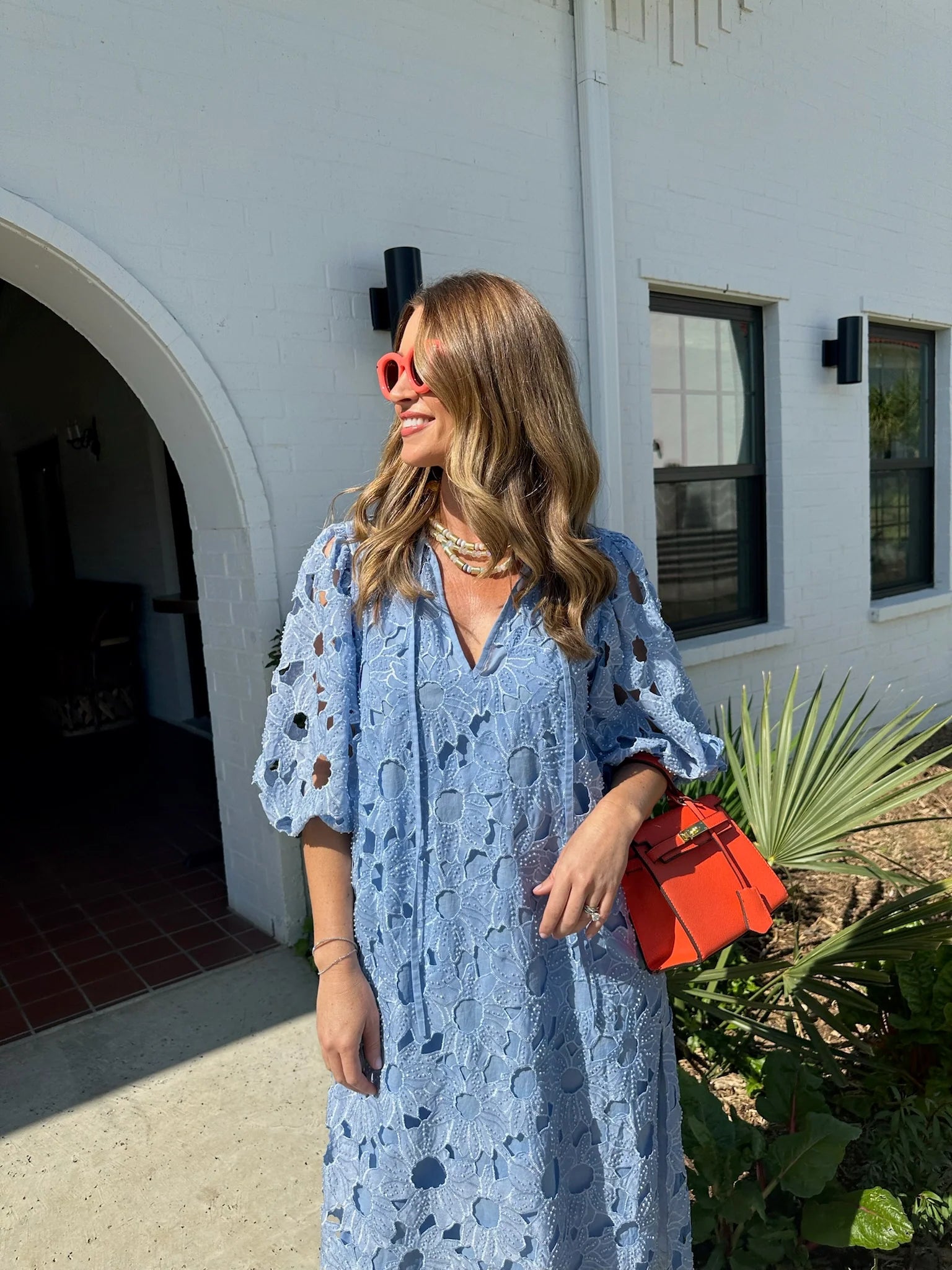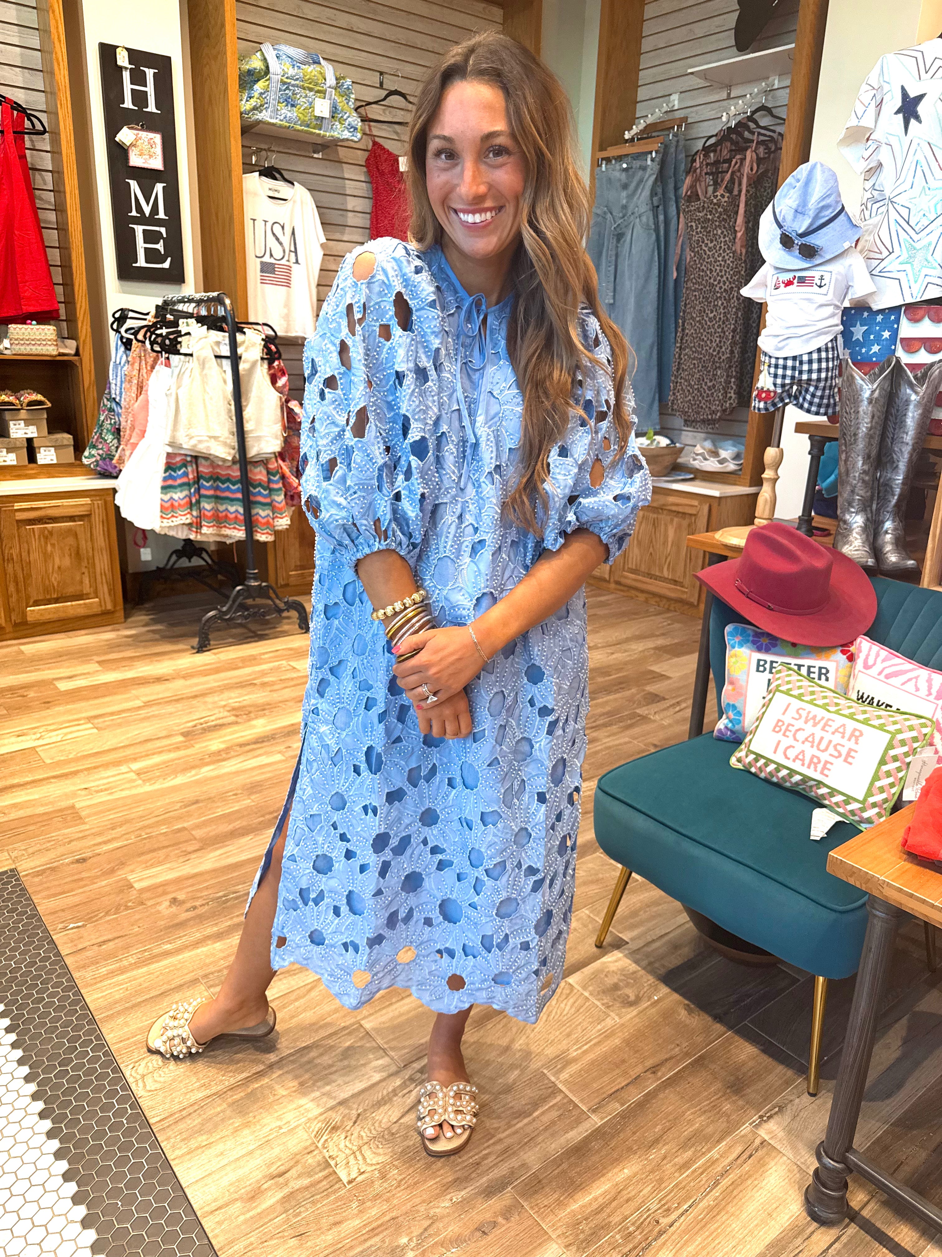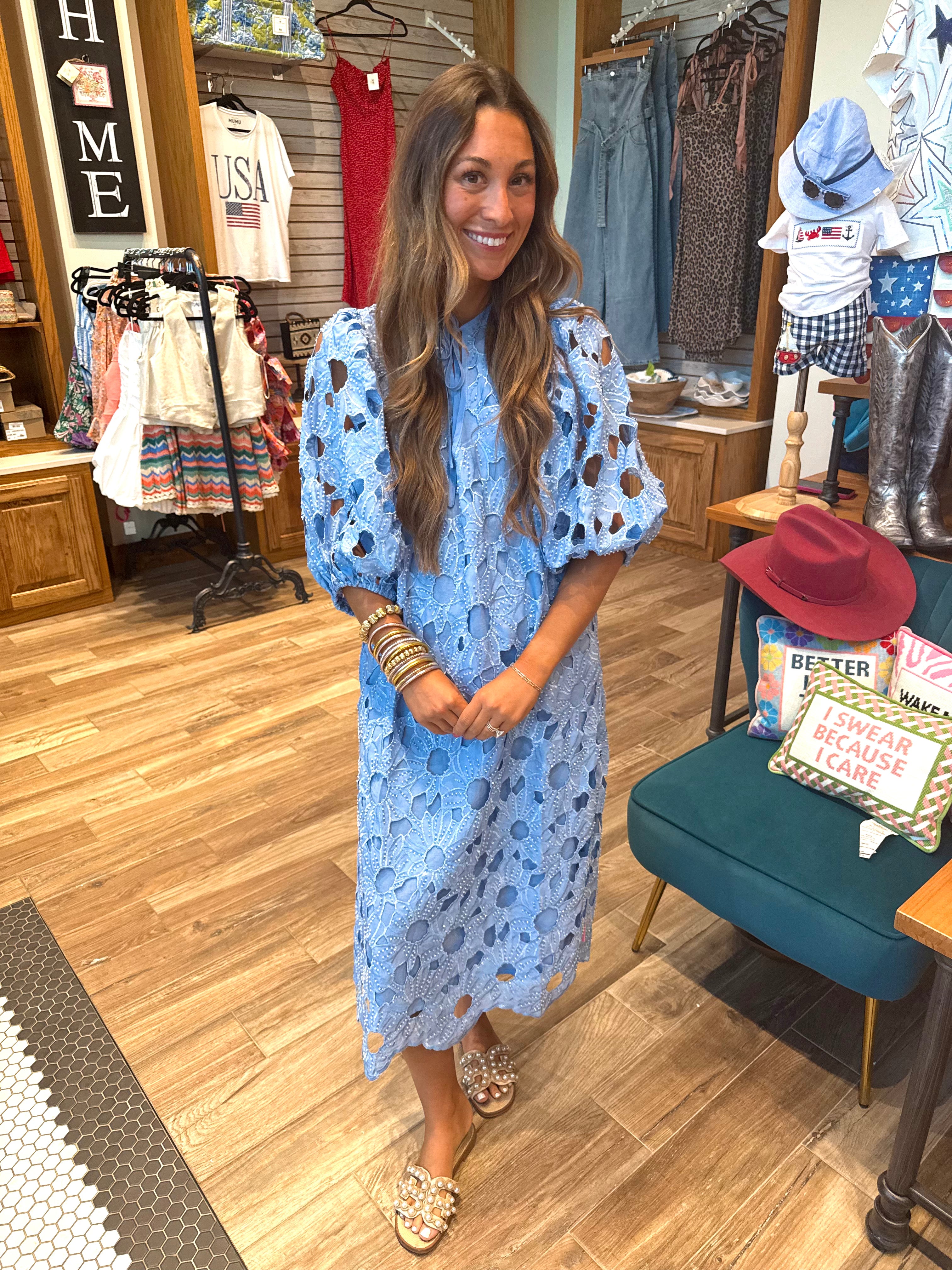 Looking so good has never been so easy with our Pamela Dress in this beautiful lace and sequin detailing! She features a v neckline, elbow length sleeves with elastic for comfortability, side slits and a maxi silhouette and length. Dress it up with heels for a date night out or dress it down with sandals to go shopping!