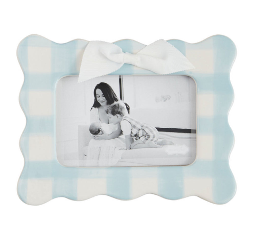This exquisite hand-painted ceramic frame is a perfect blend of artistry and elegance, designed to beautifully showcase your cherished memories. Measuring 4" x 6", it features a charming scallop edge that adds a touch of sophistication to any room. The frame is adorned with a delightful hat ribbon bow, enhancing its whimsical appeal and making it a standout piece in your home decor. Crafted from high-quality dolomite, the frame measures 9" x 7" overall, providing a sturdy and durable structure that ensures your photos are displayed with grace. The easel back design allows for easy placement on any tabletop or shelf, making it a versatile addition to your living space. Whether you're looking to add a personal touch to your home or searching for a thoughtful gift, this hand-painted ceramic frame is sure to impress with its unique design and timeless charm