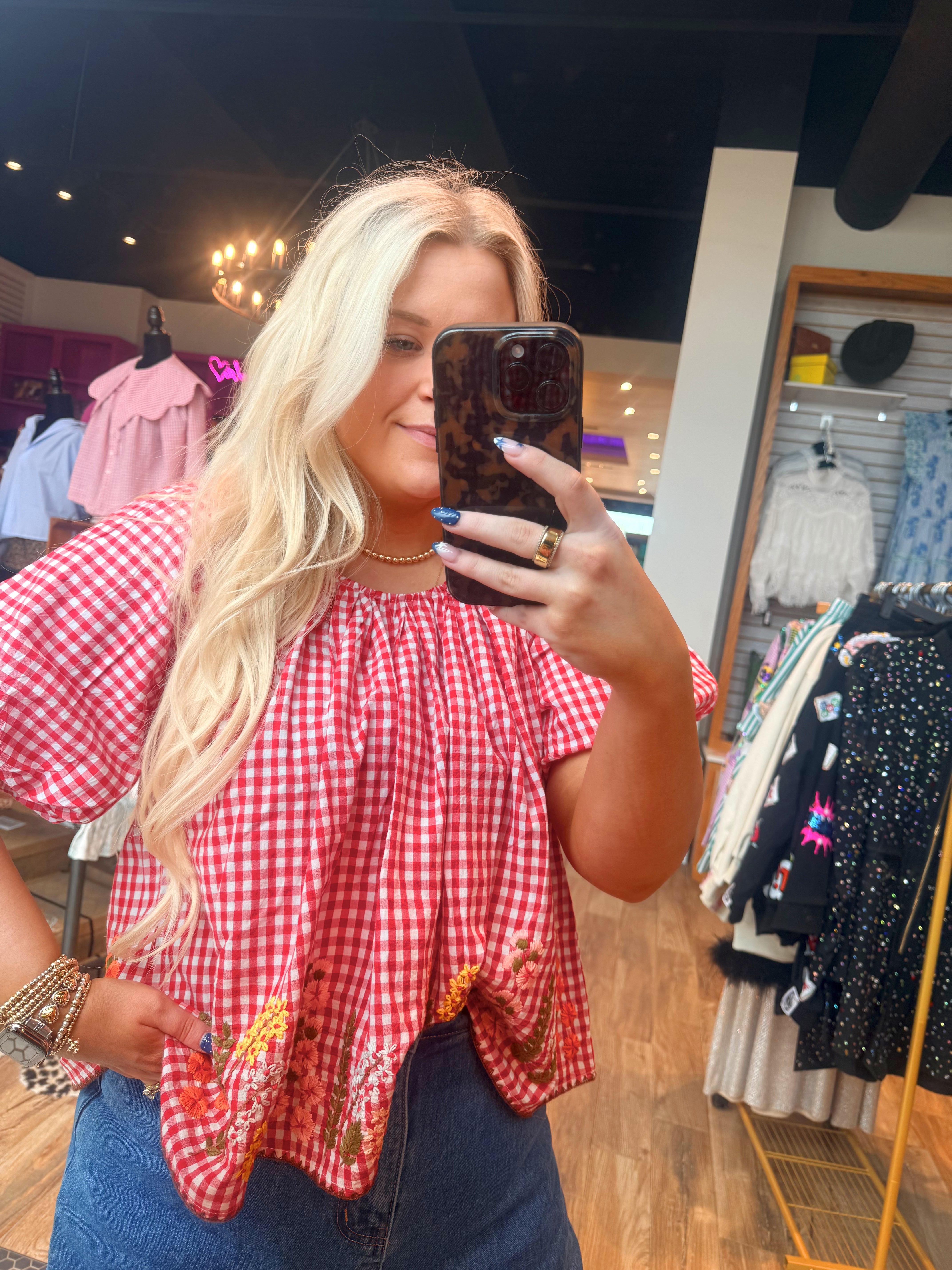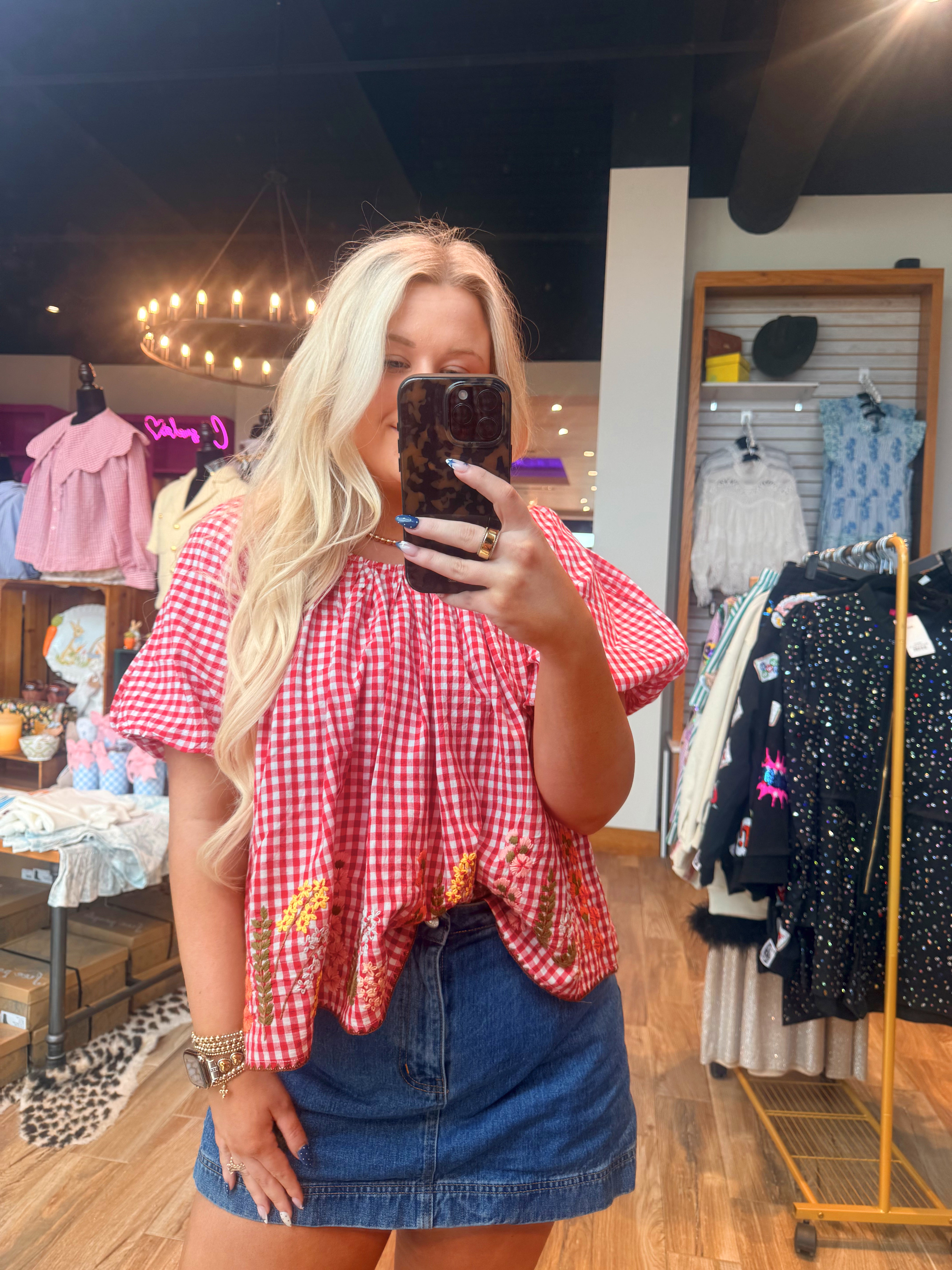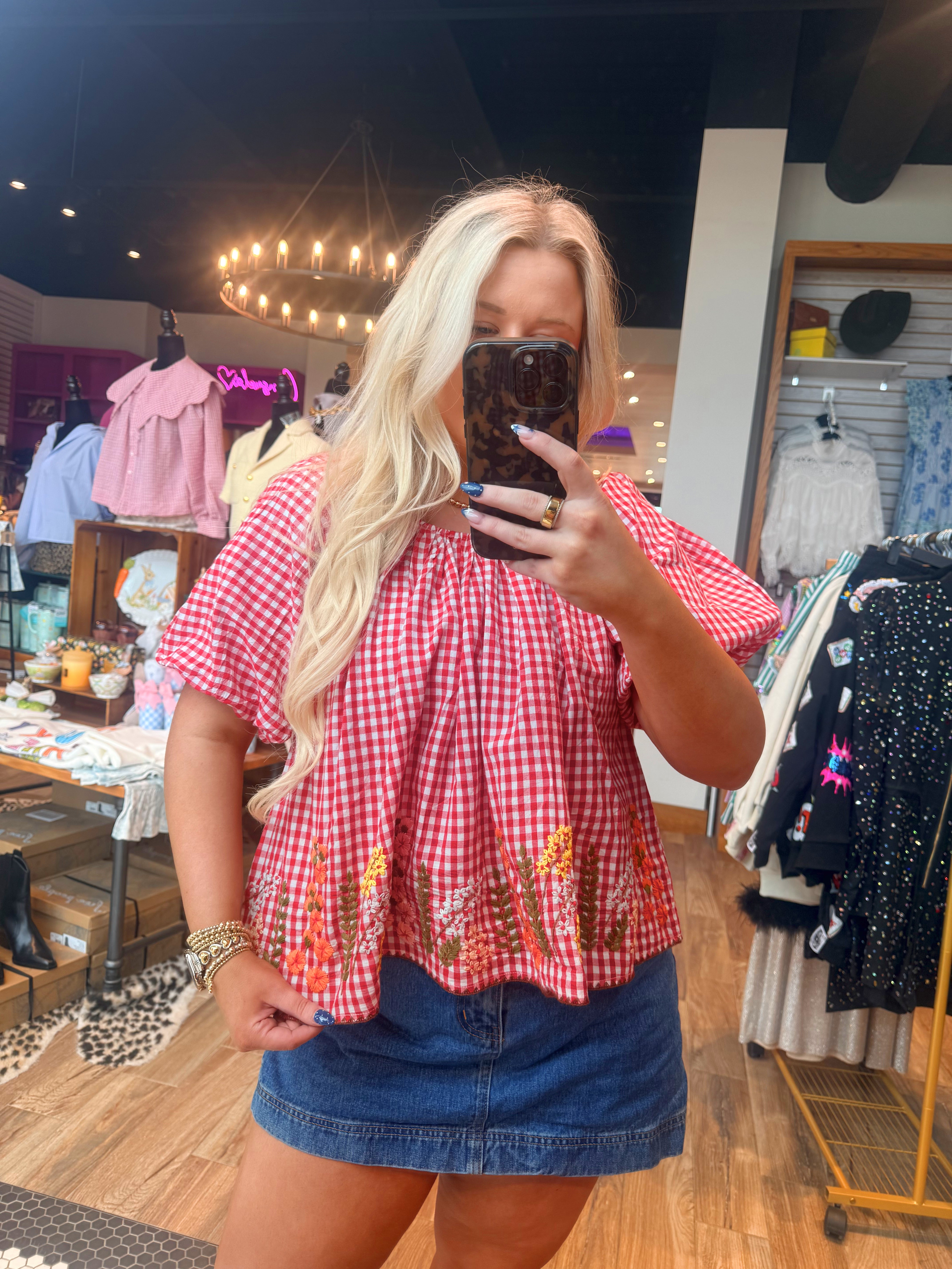 Gingham and Flowers Top