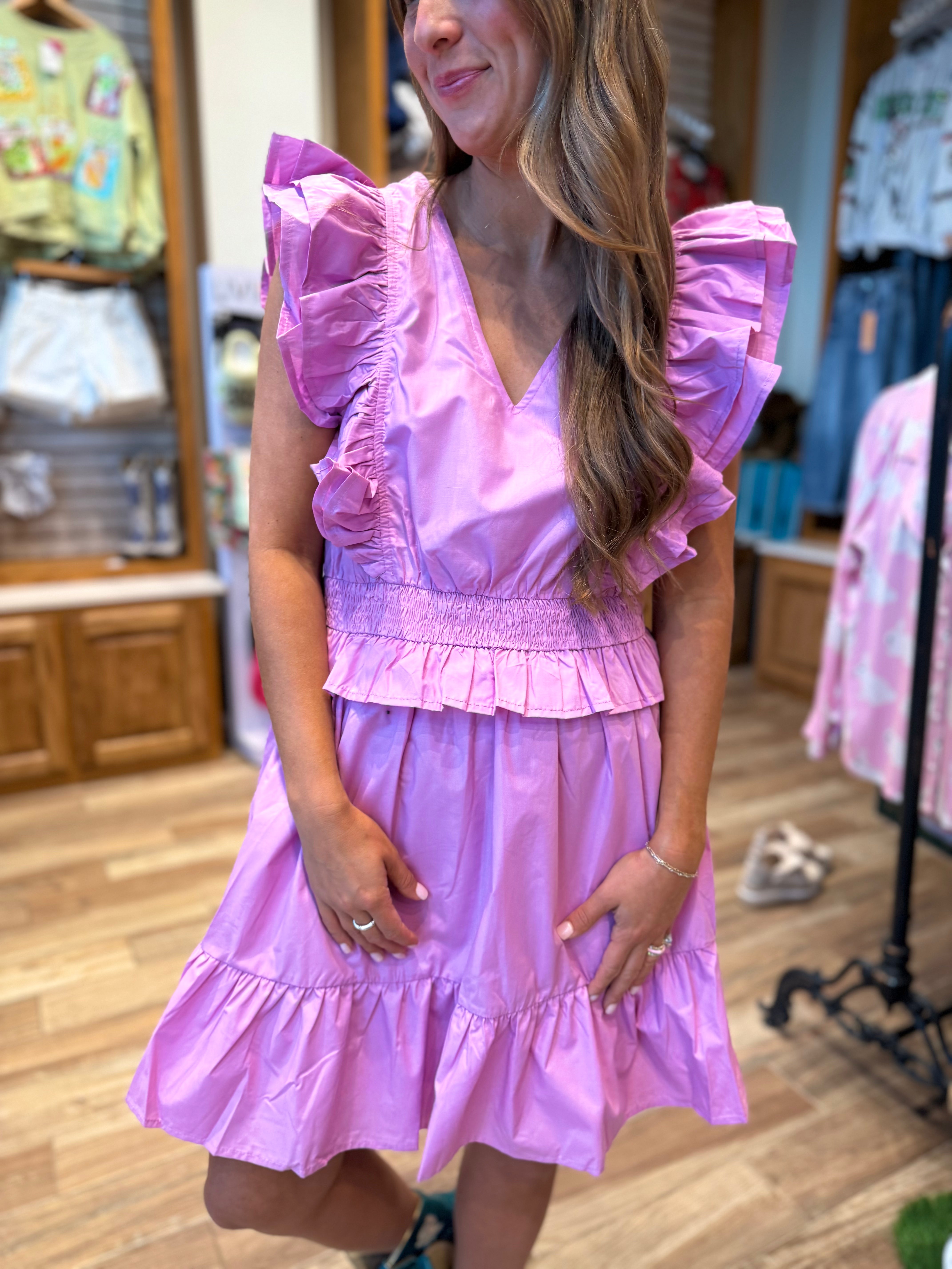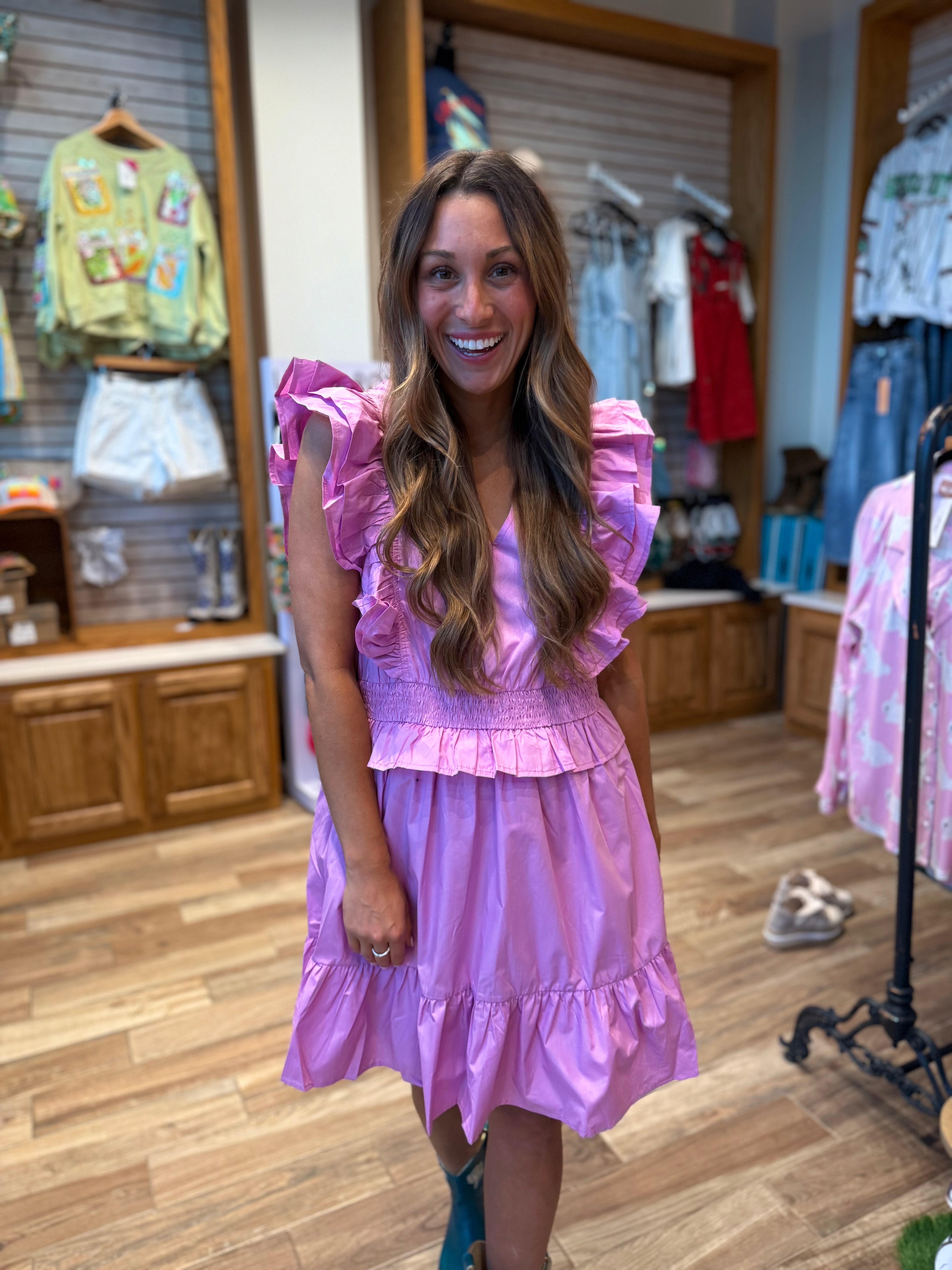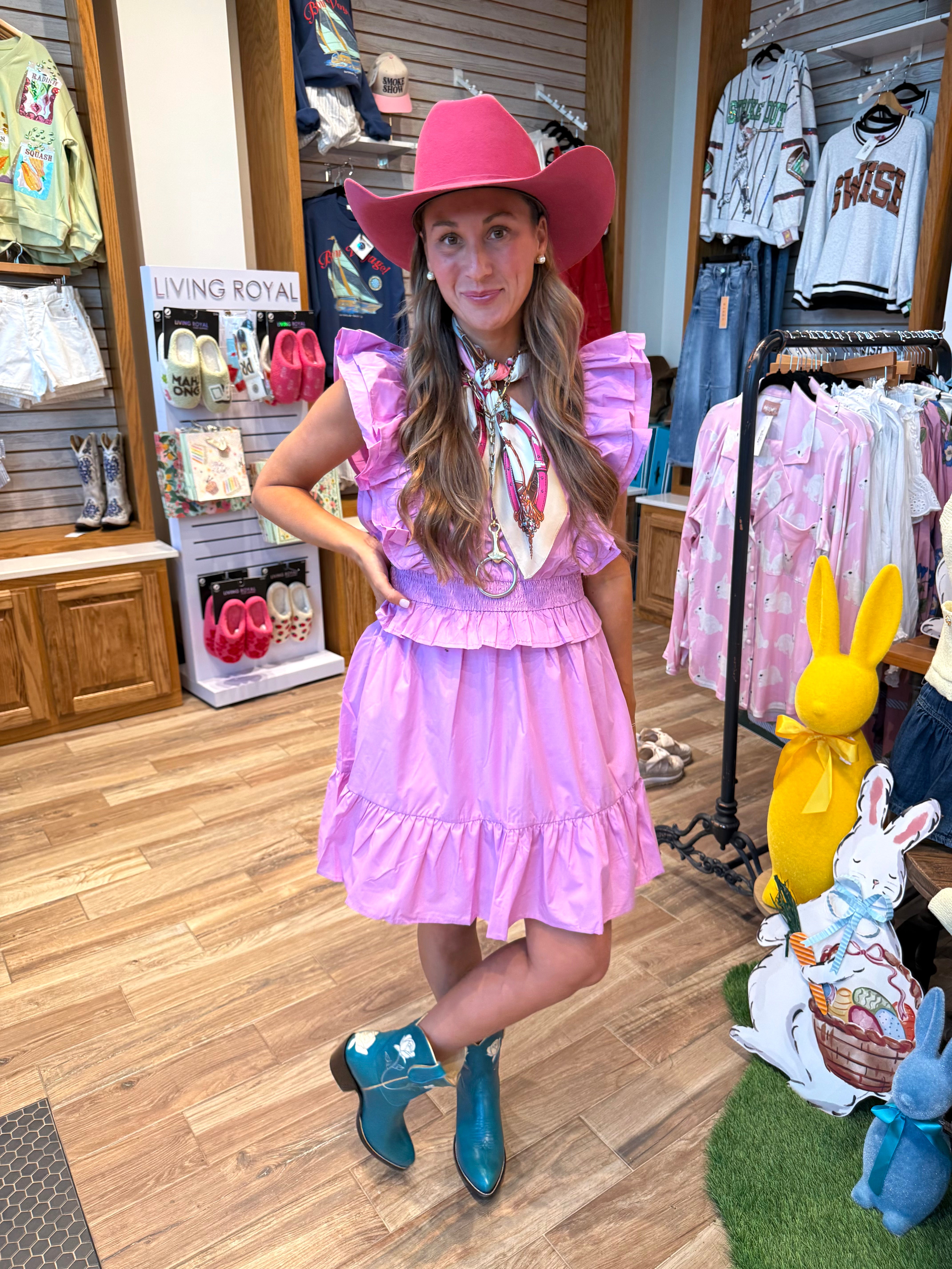 The Khloe dress is easy and bright and the perfect dress that can be worn all on its own or accessorized to the nines! Elastic waist for a cinched look to compliment your figure with frilly sleeves and a swing skirt style that compliments every kind of shoes!