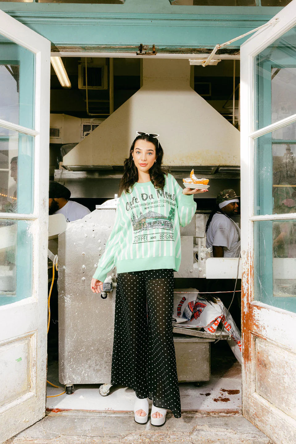 Licensend Mint & White Striped 'Café Du Monde' Sweater