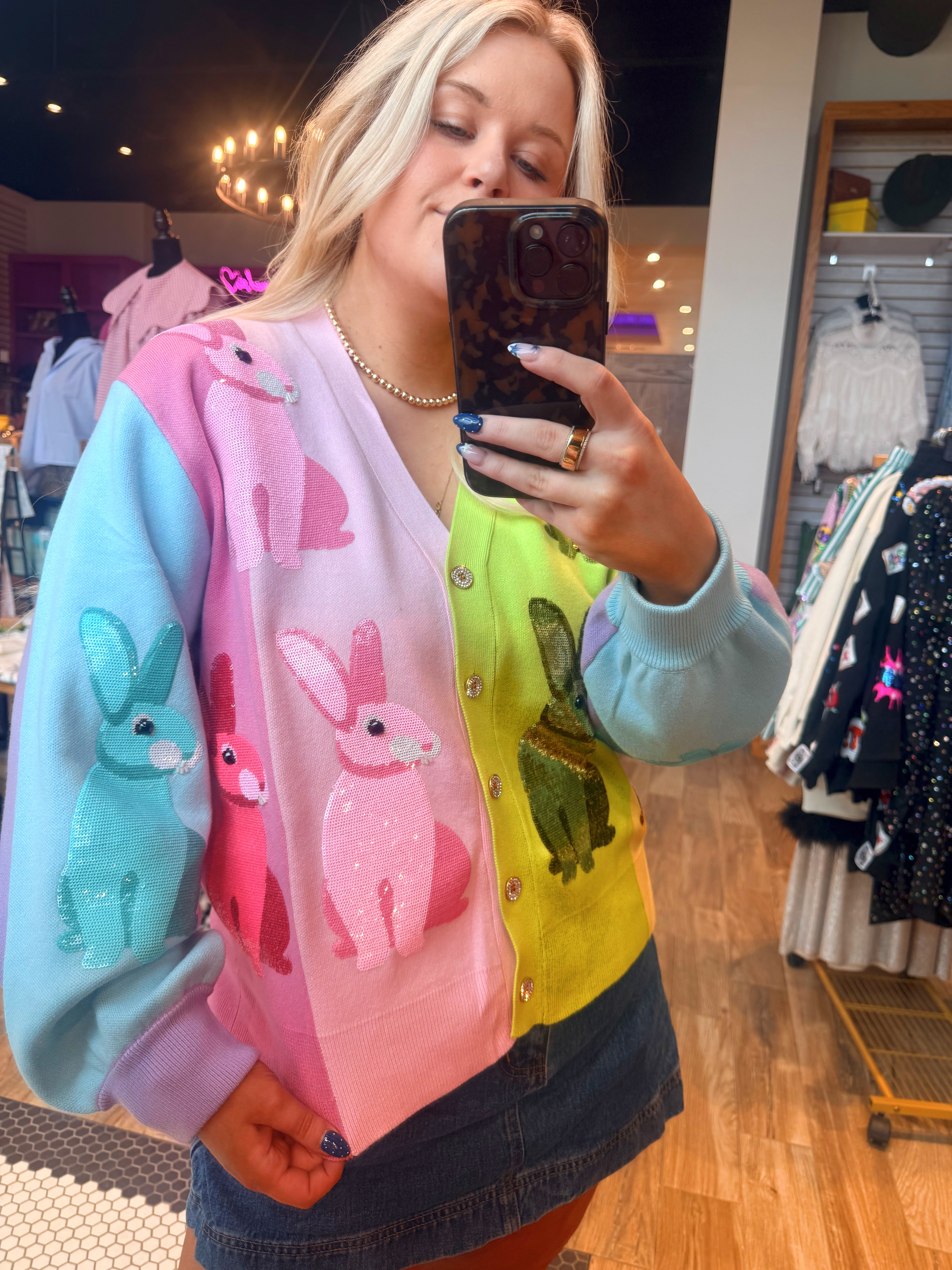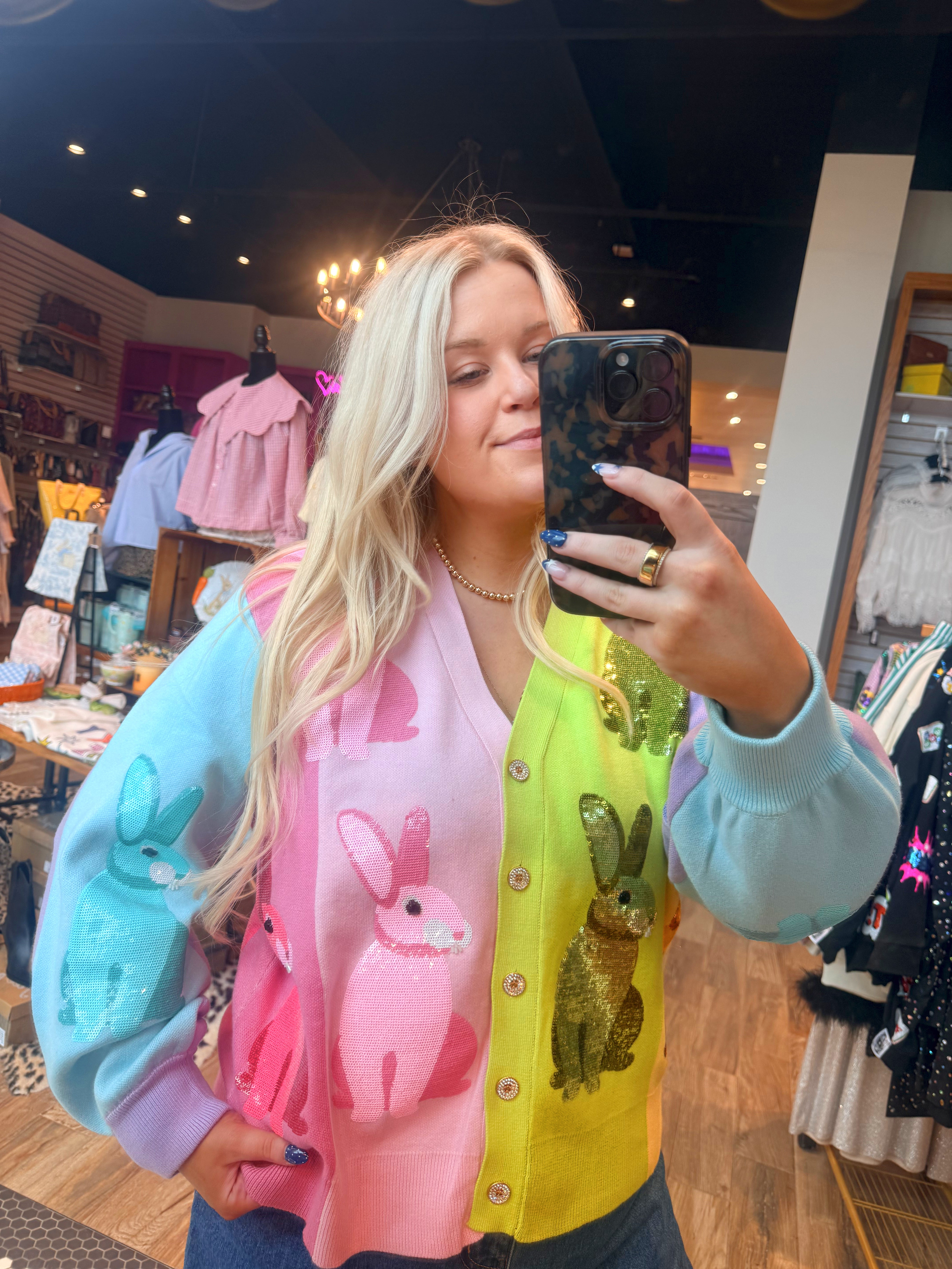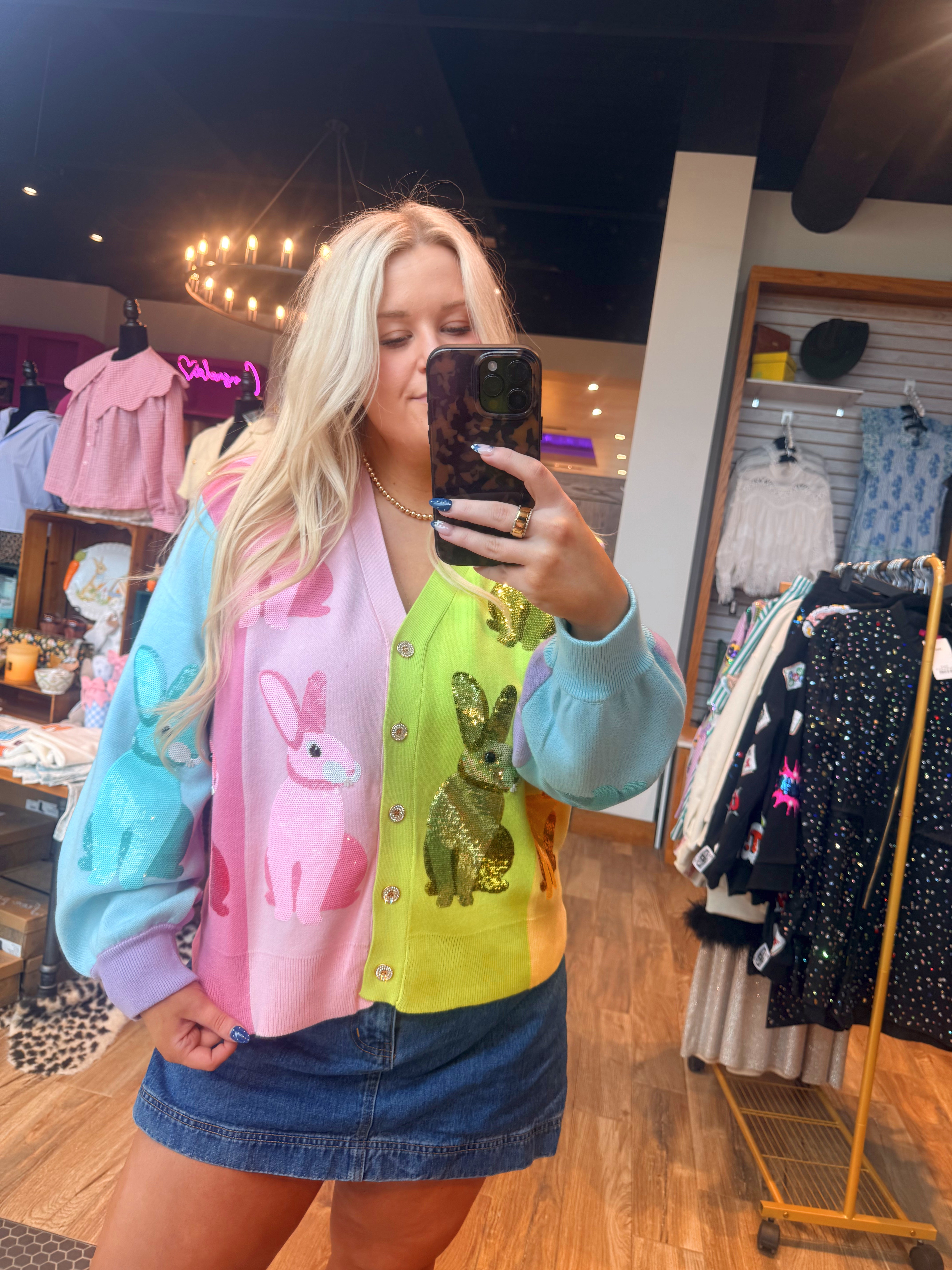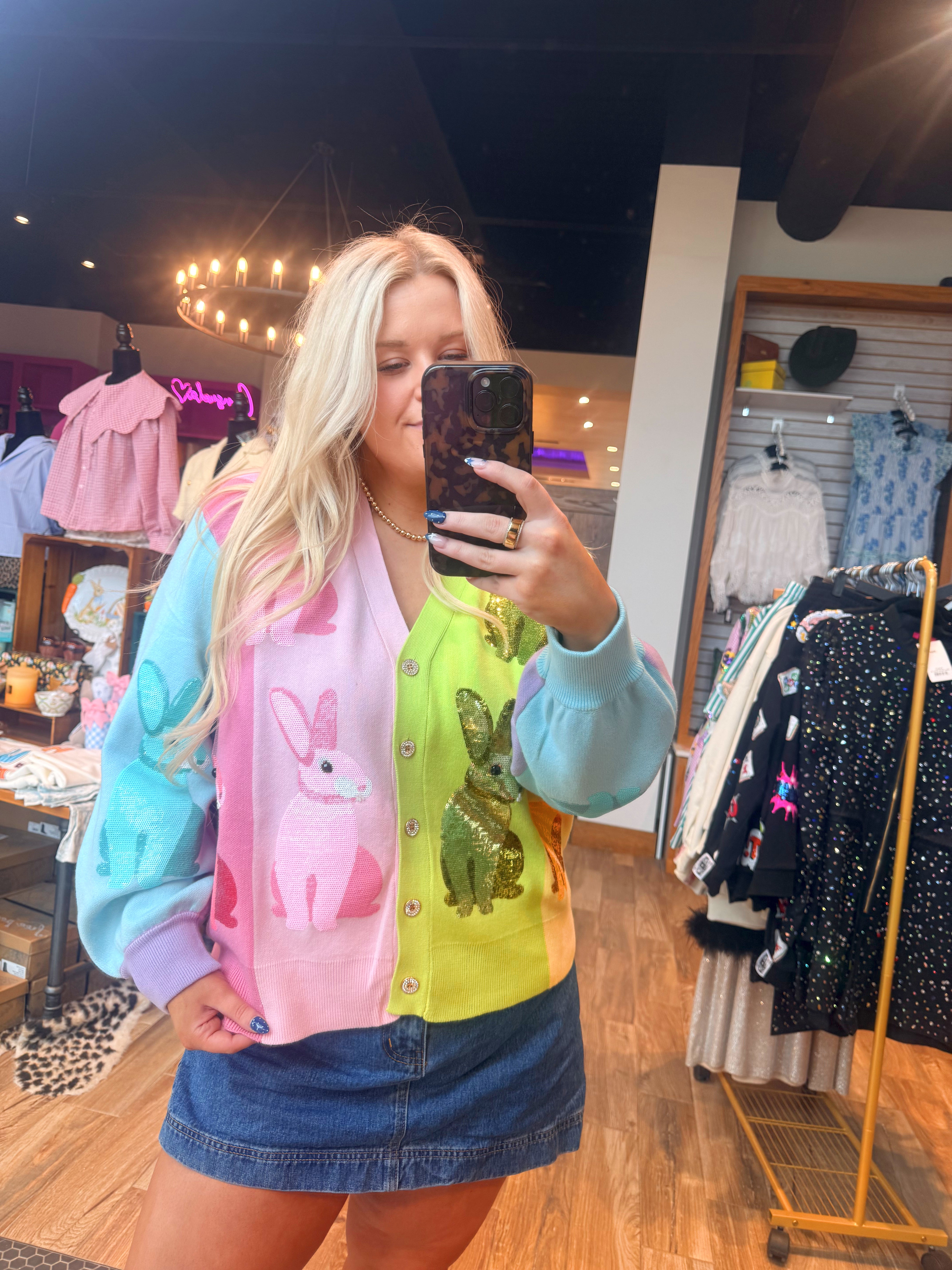 Rainbow Colorblock Easter Bunny Button Up Cardigan