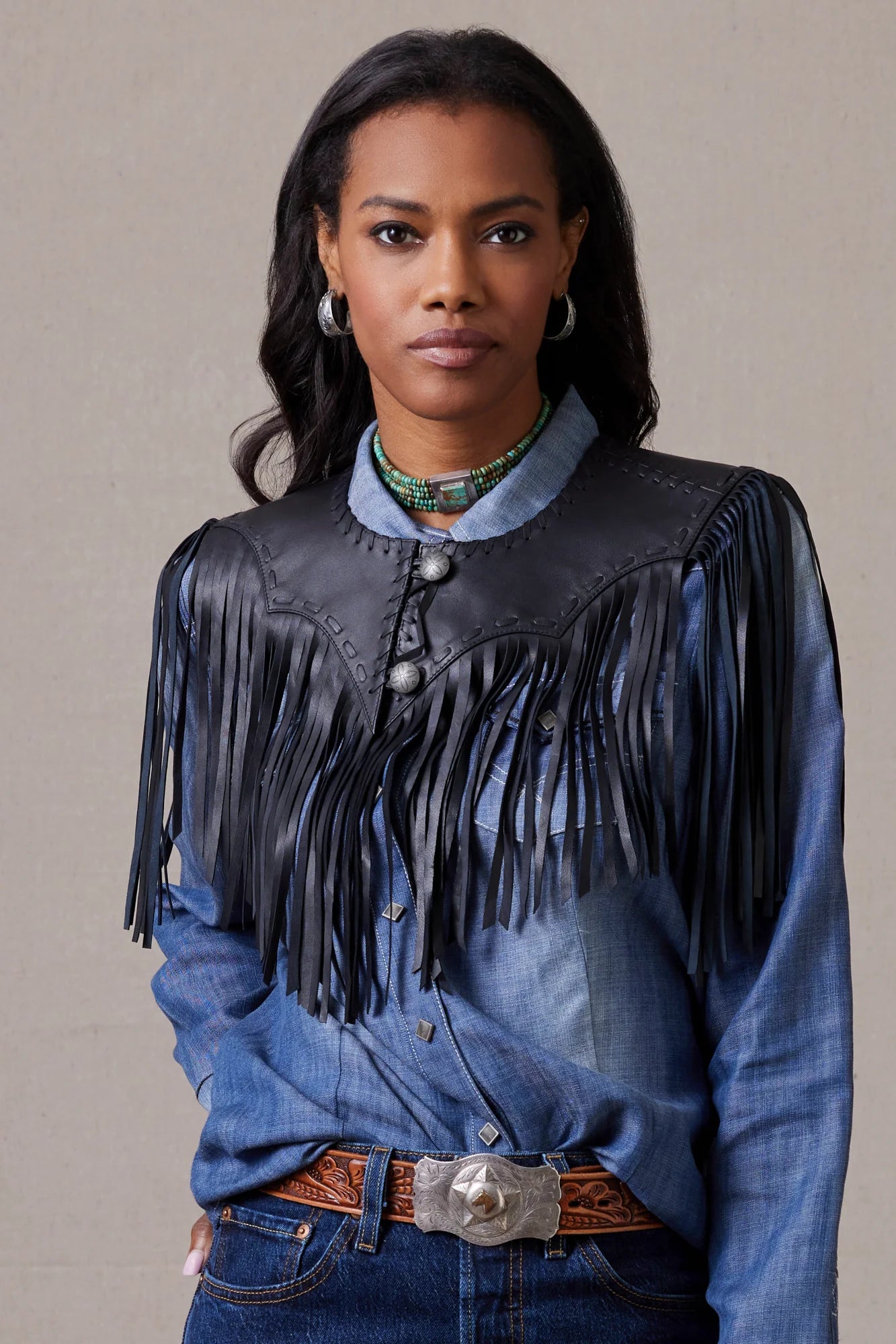 Just when you thought we’d run out of ways to work a little full-length fringe into your Western wardrobe, we styled the Sonora into a collar. It’s that same signature style that you love with a two-button clasp, tonal leather lacing, and all that fabulous fringe, and it’s easier than ever to wear!