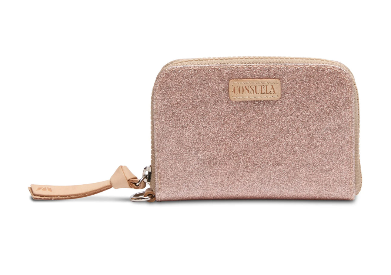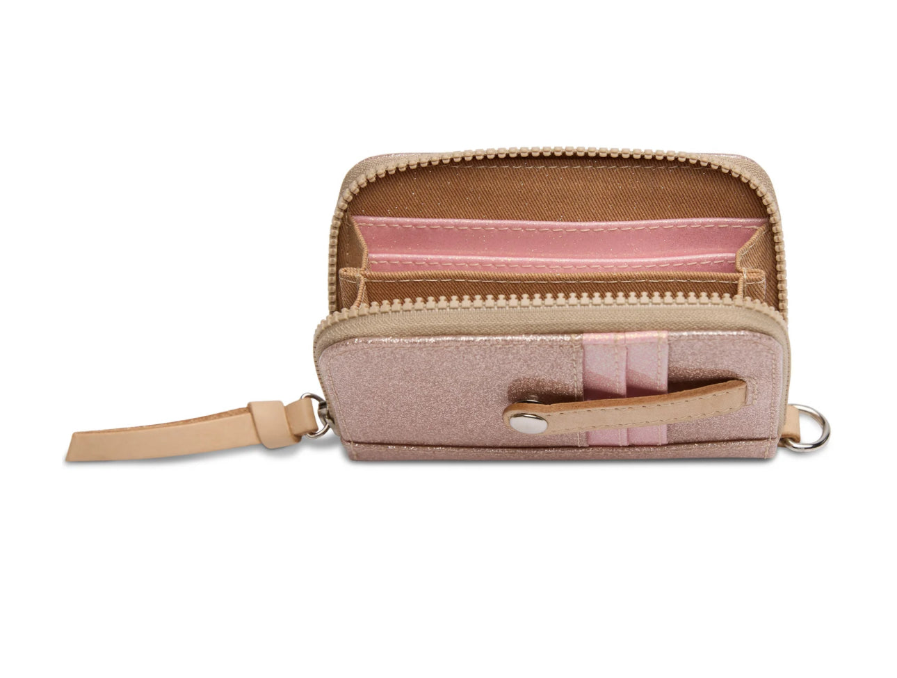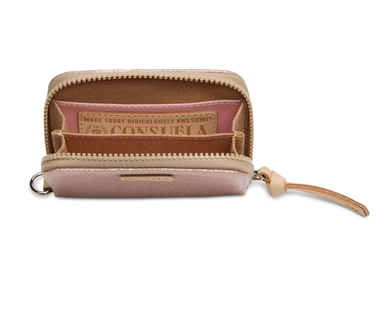 Say hello to Zippy, our newest wallet. This small, but mighty companion has both interior and exterior card slots with a zip closure. Use the D-ring to securely attach Zippy to your bag lanyard or combi wristlet.