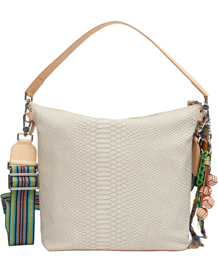 The Consuela Hobo is a convertible crossbody or shoulder bag with two included straps. This bag comfortably carries the essentials and then some more!