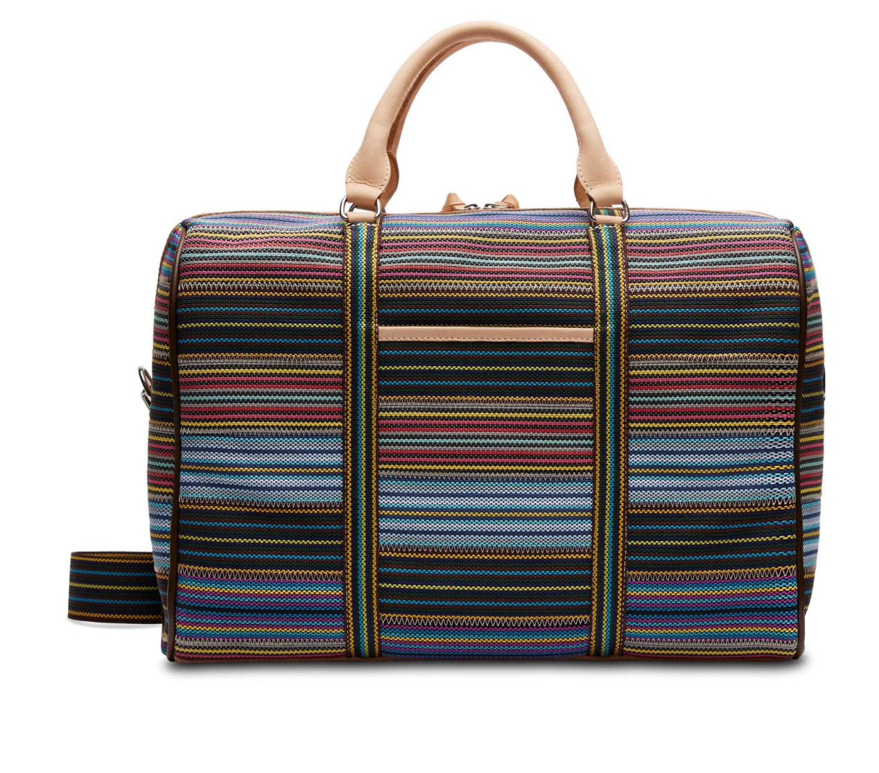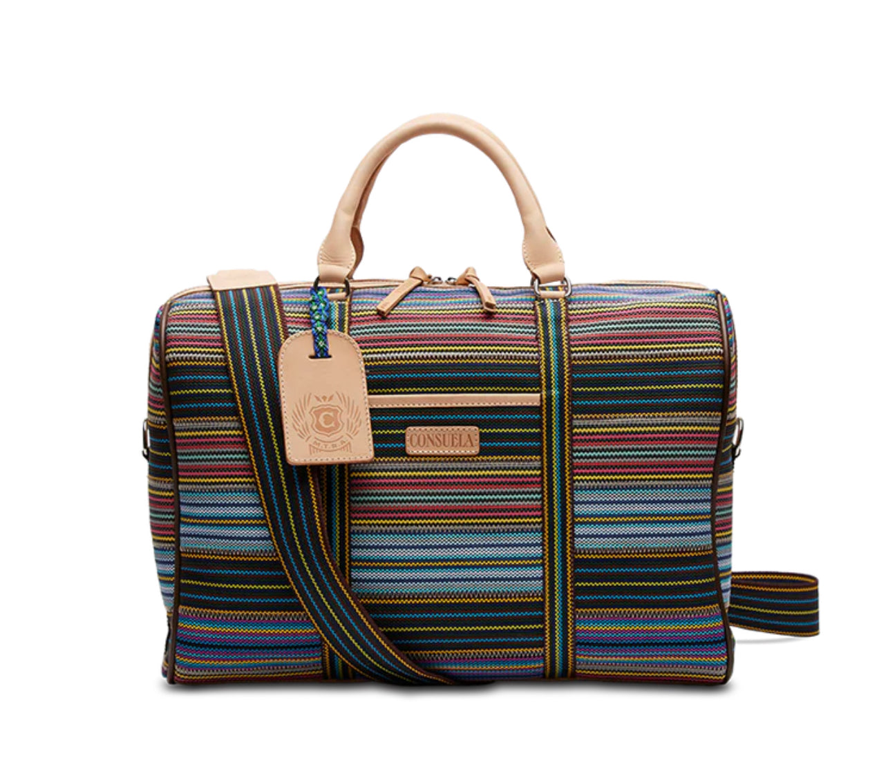 This spacious and colorful duffel is the perfect carry-on for a weekend getaway, making a statement with functionality, durability, and style. Topped with natural leather handles and an adjustable webbing strap, the Jetsetter is crafted to hold its shape and makes traveling easy with ample interior storage and functional pockets.
