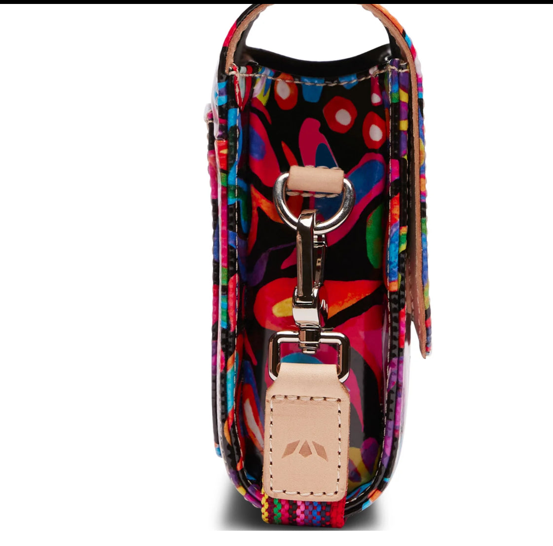 - Adjustable woven crossbody strap