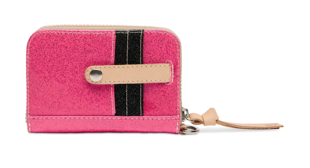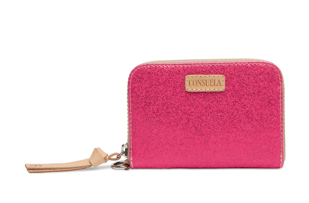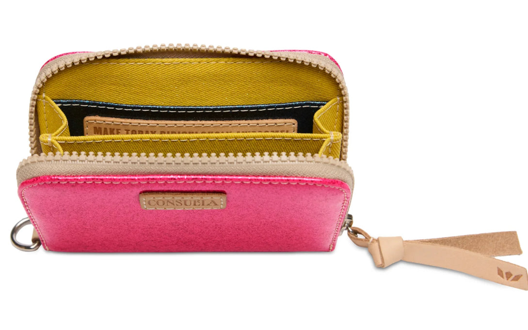 Say hello to Zippy, our newest wallet. This small, but mighty companion has both interior and exterior card slots with a zip closure. Use the D-ring to securely attach Zippy to your bag lanyard or combi wristlet.