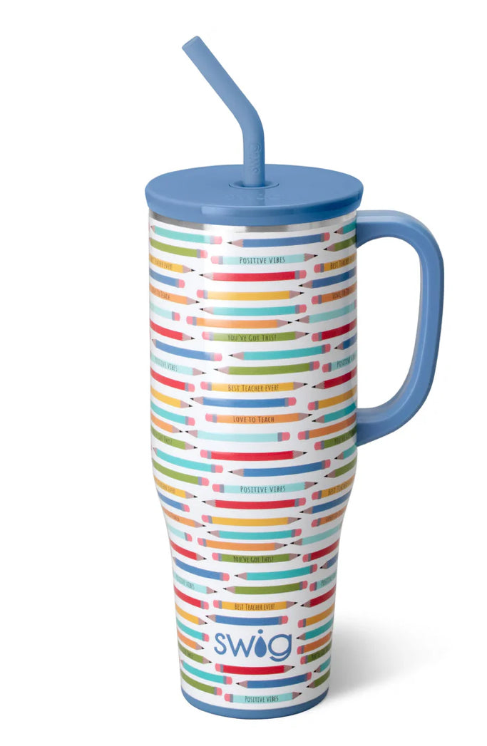 Hydrating has never been easier with our 40oz Insulated Mega Mug! A cup holder-friendly frame, a comfort-grip handle, and a plastic straw with a silicone flexi-tip all come together to create your new favorite Swig.