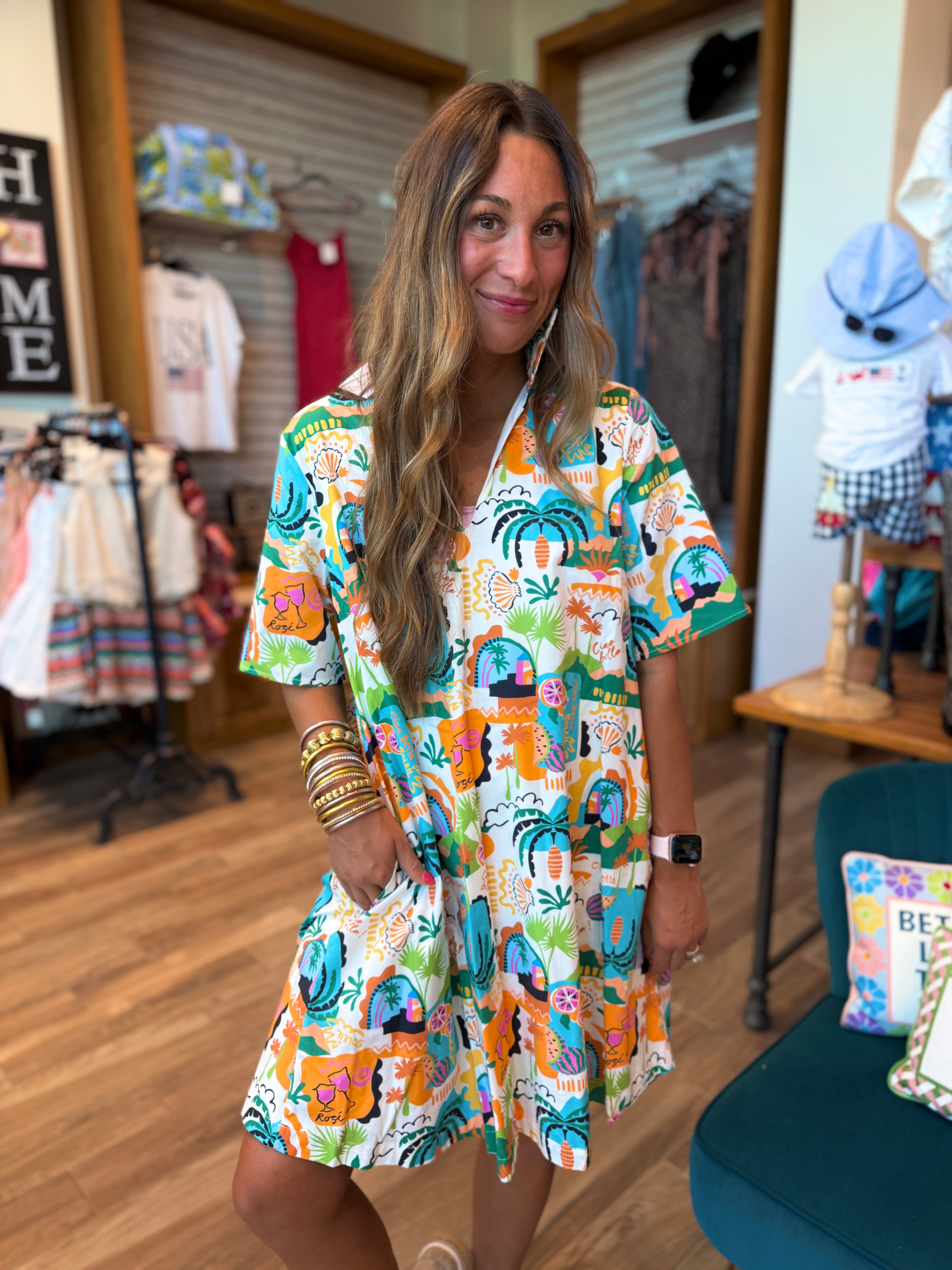 The Olivia dress is a super flattering Aline dress with a ruffle collar! And it has pockets!