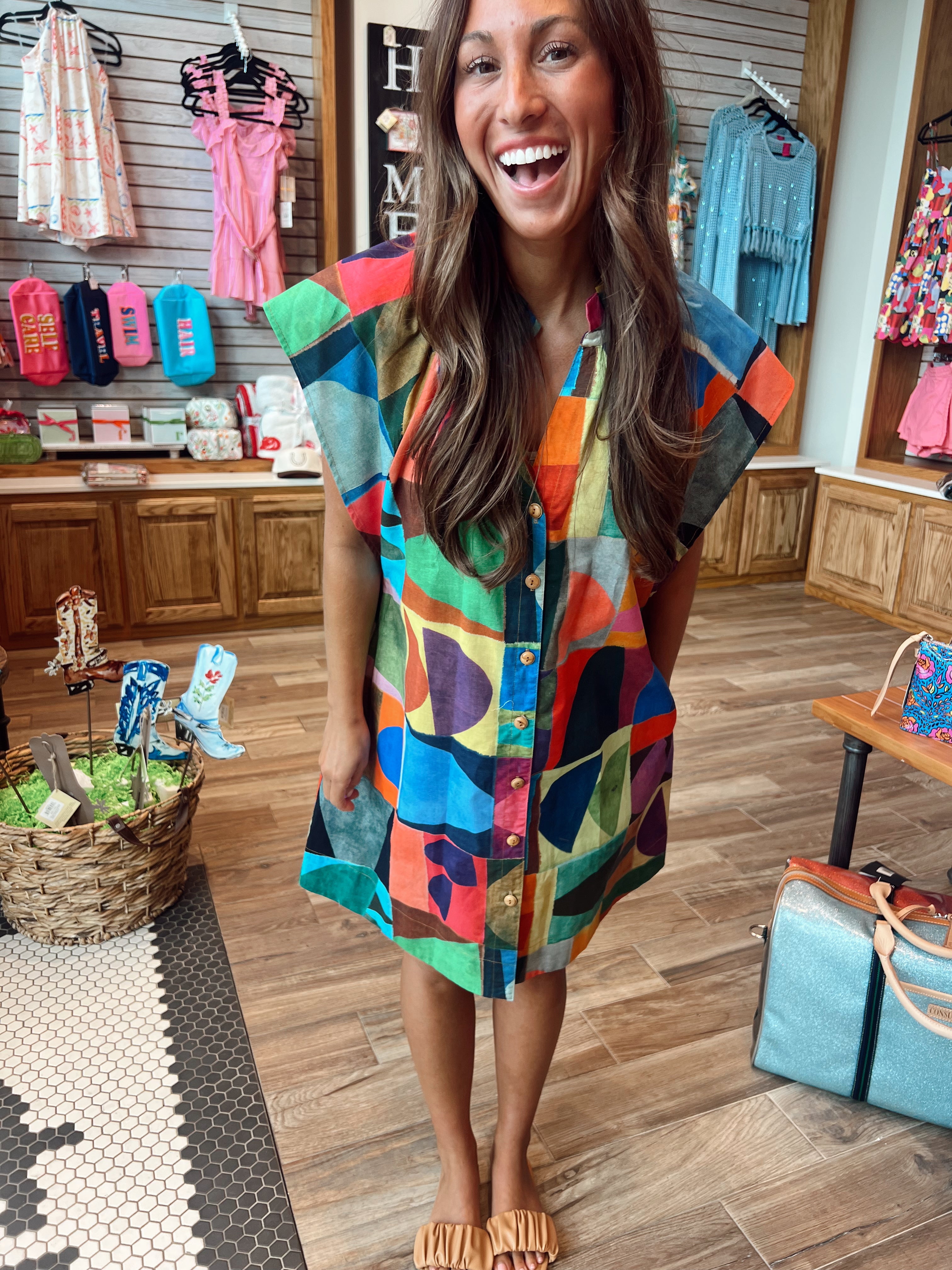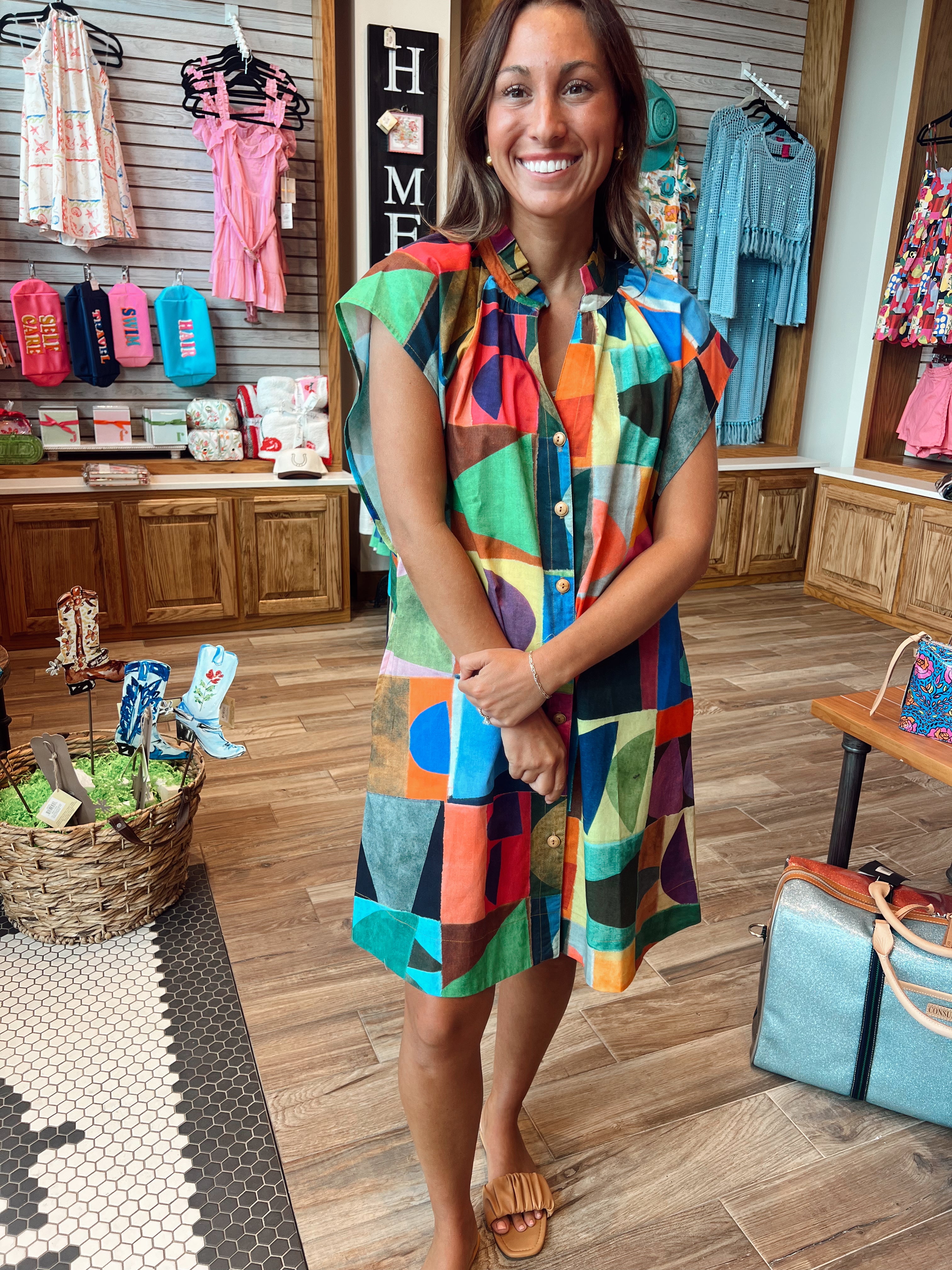 Add a splash of fun to your wardrobe with this multi-color patterned dress! Featuring a playful button-up front and handy pockets, it’s perfect for keeping essentials close while you enjoy your day. Bright, bold, and effortlessly stylish, this dress brings a cheerful vibe wherever you go.