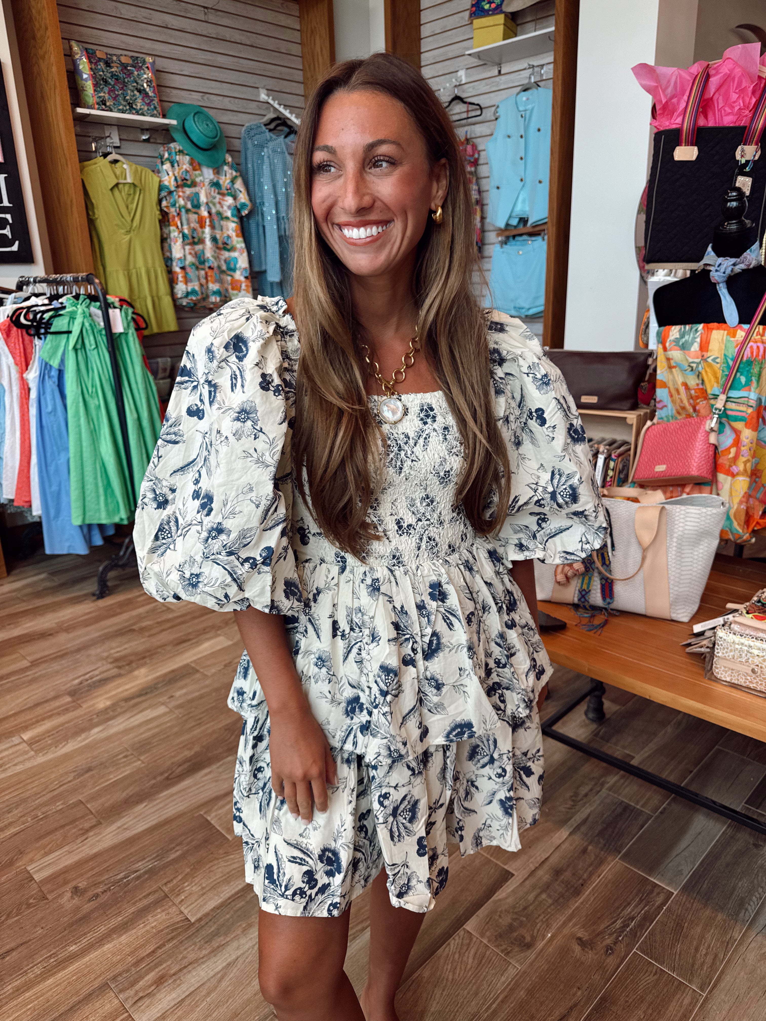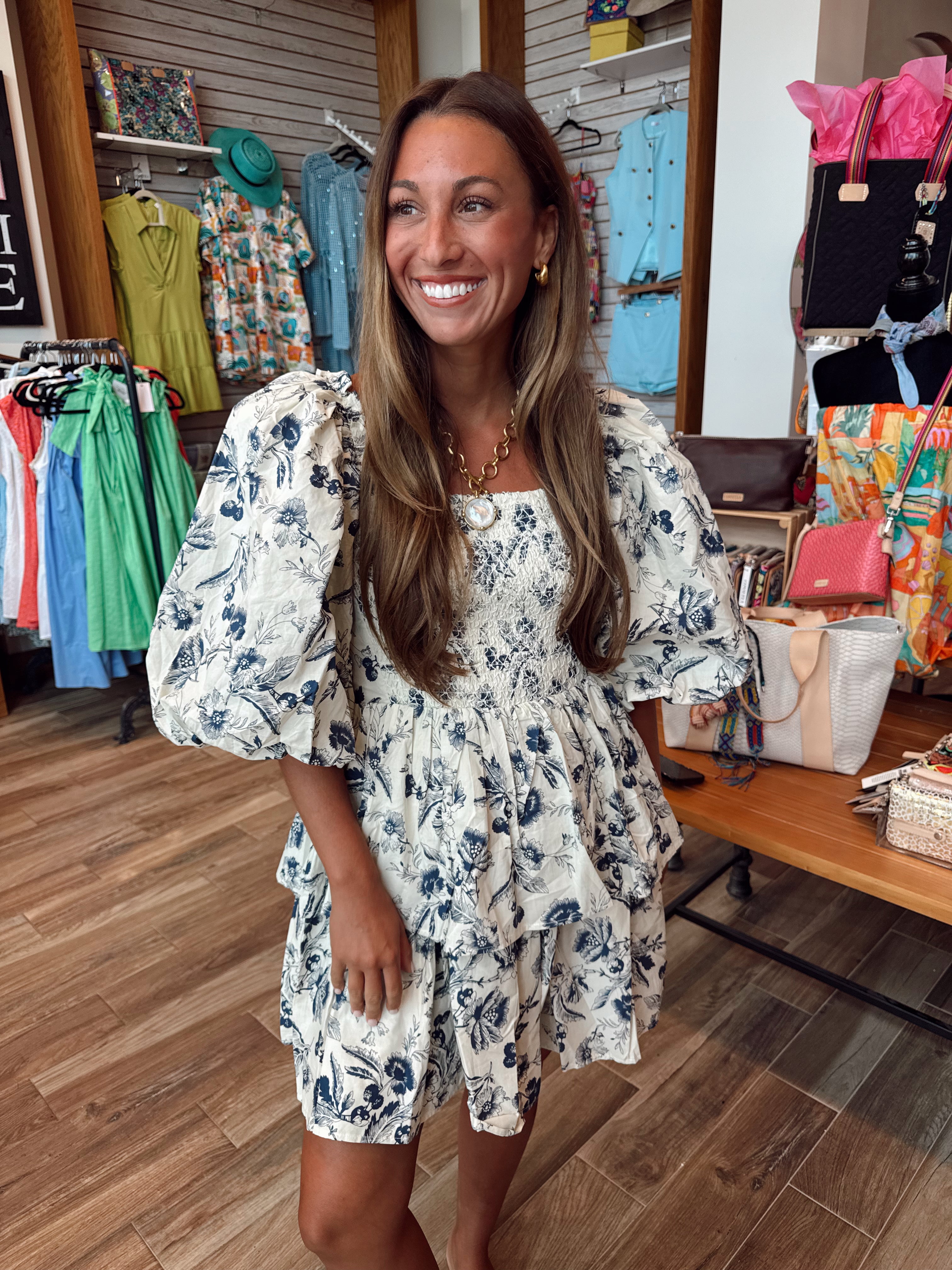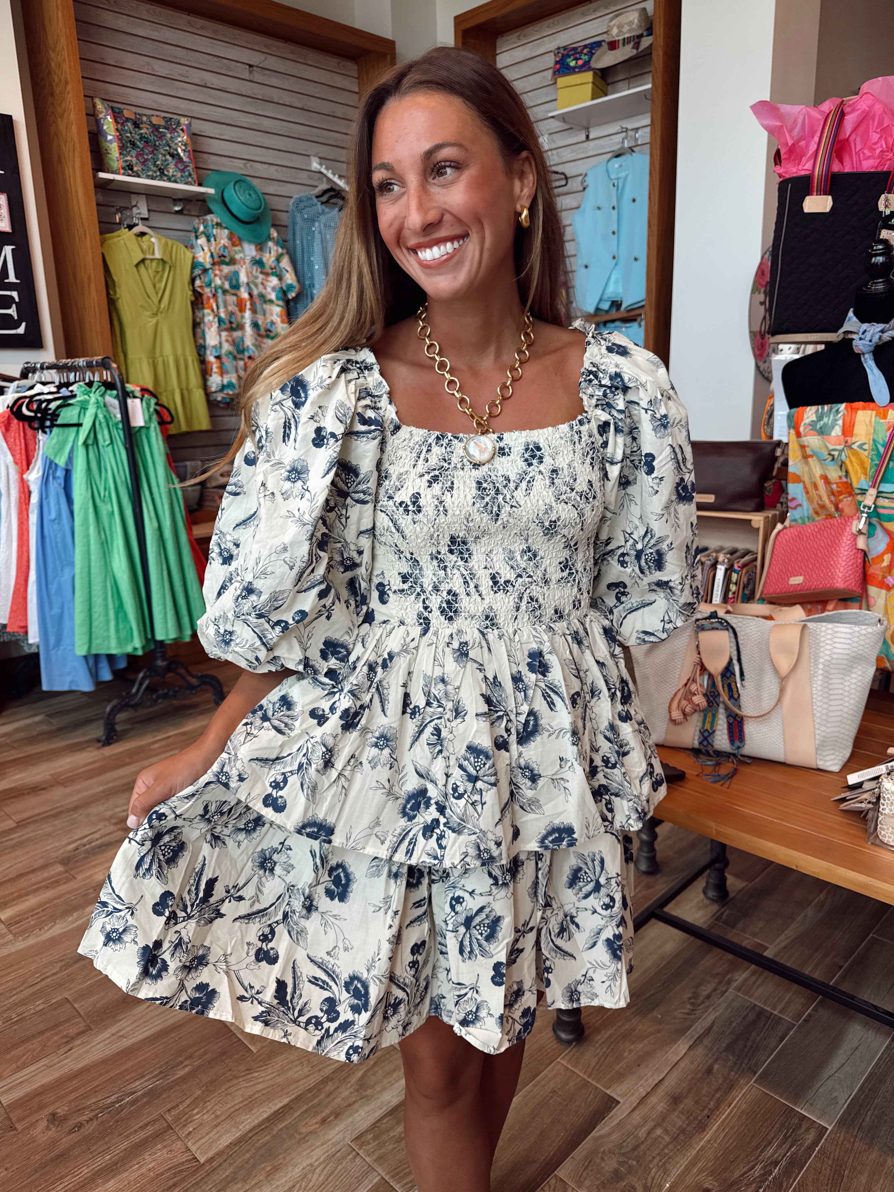 The Sofia ruffled dress is a gorgeous ruffled skirt with puff sleeves and a smocked bust!