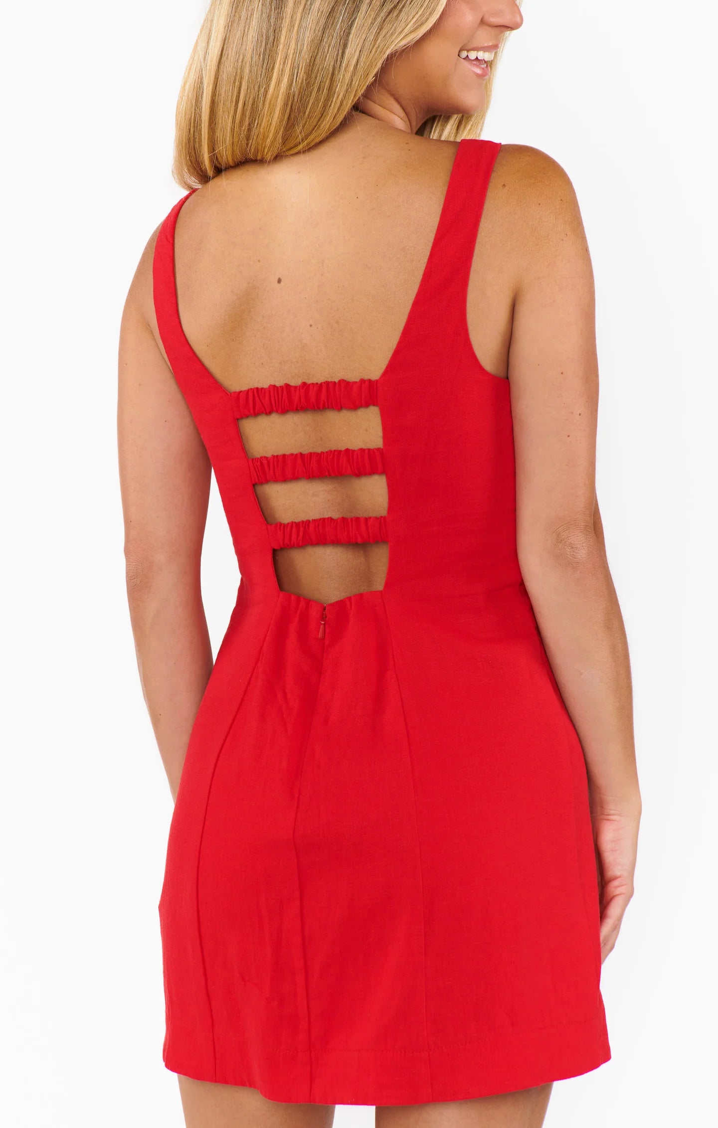 The Steph Mini Dress is the perfect mini for a girls night out! In a fiery red hue with a flirty open back, this dress is made for turning heads. Style with dainty accessories for the ultimate vacay look.