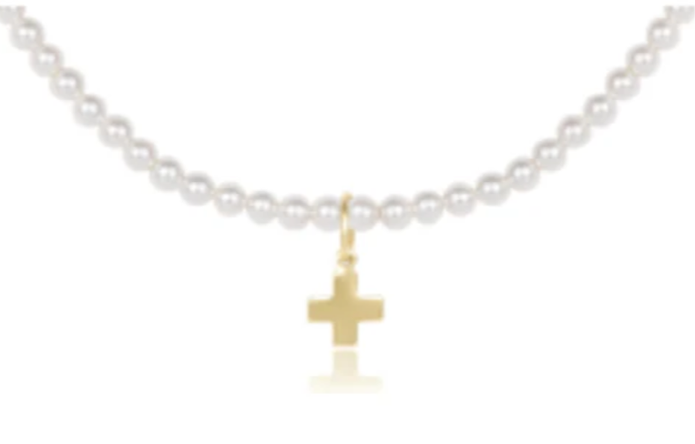15" CHOKER CLASSIC PEARL 3MM BEAD SIGNATURE CROSS