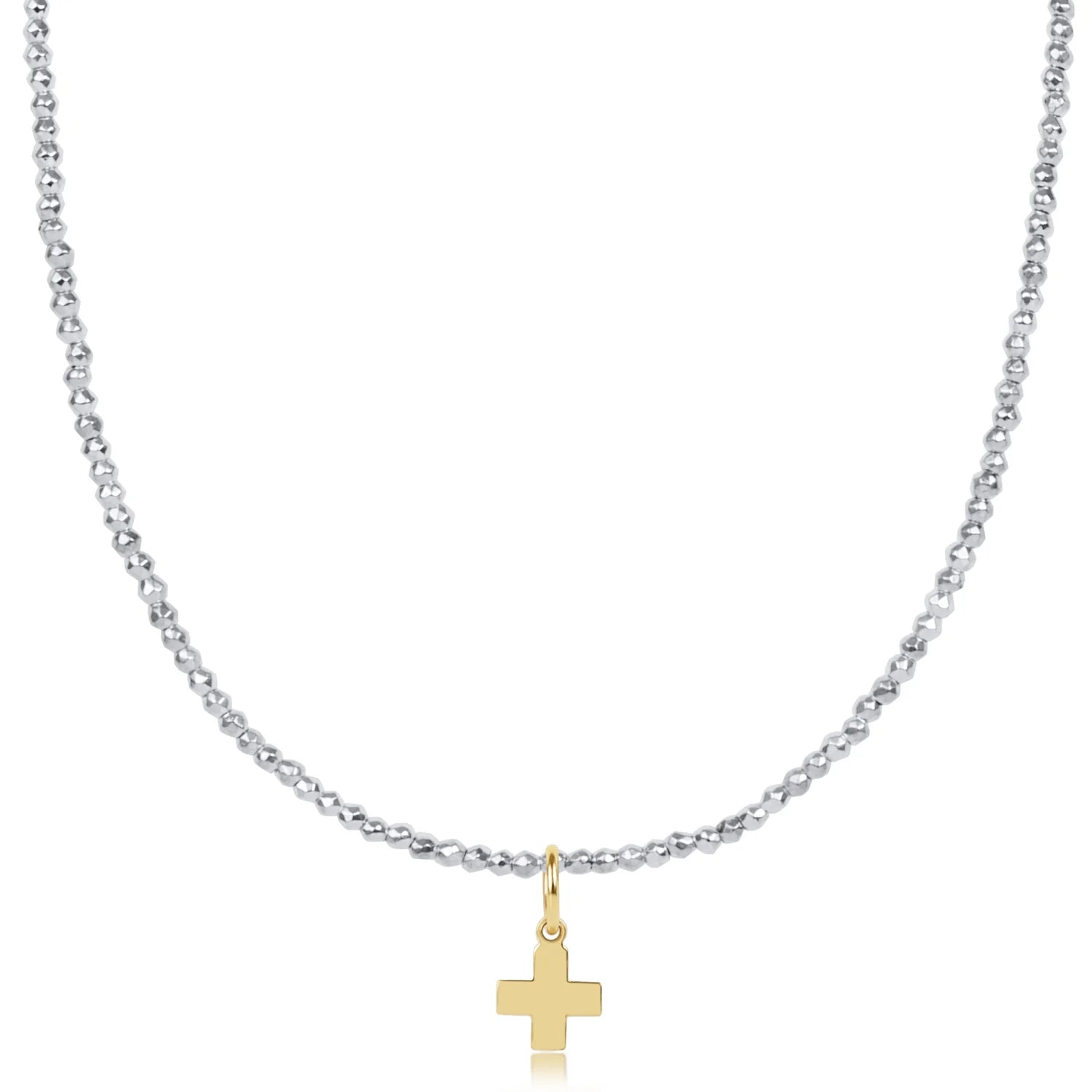 choker bright silver faceted hematite 2mm bead - signature cross gold charm