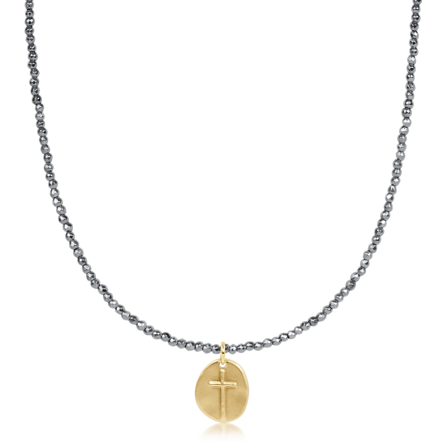 choker silver faceted hematite 2mm bead - inspire small gold charm