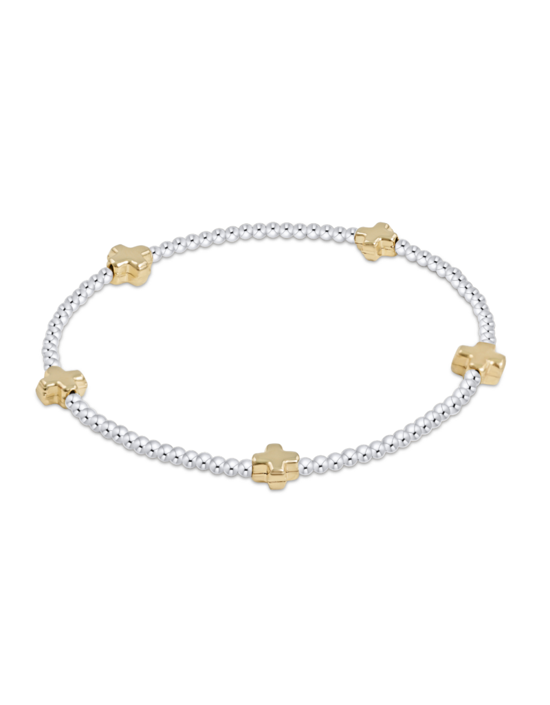 Signature Cross Pattern 2mm Bead Bracelet - Mixed Metal