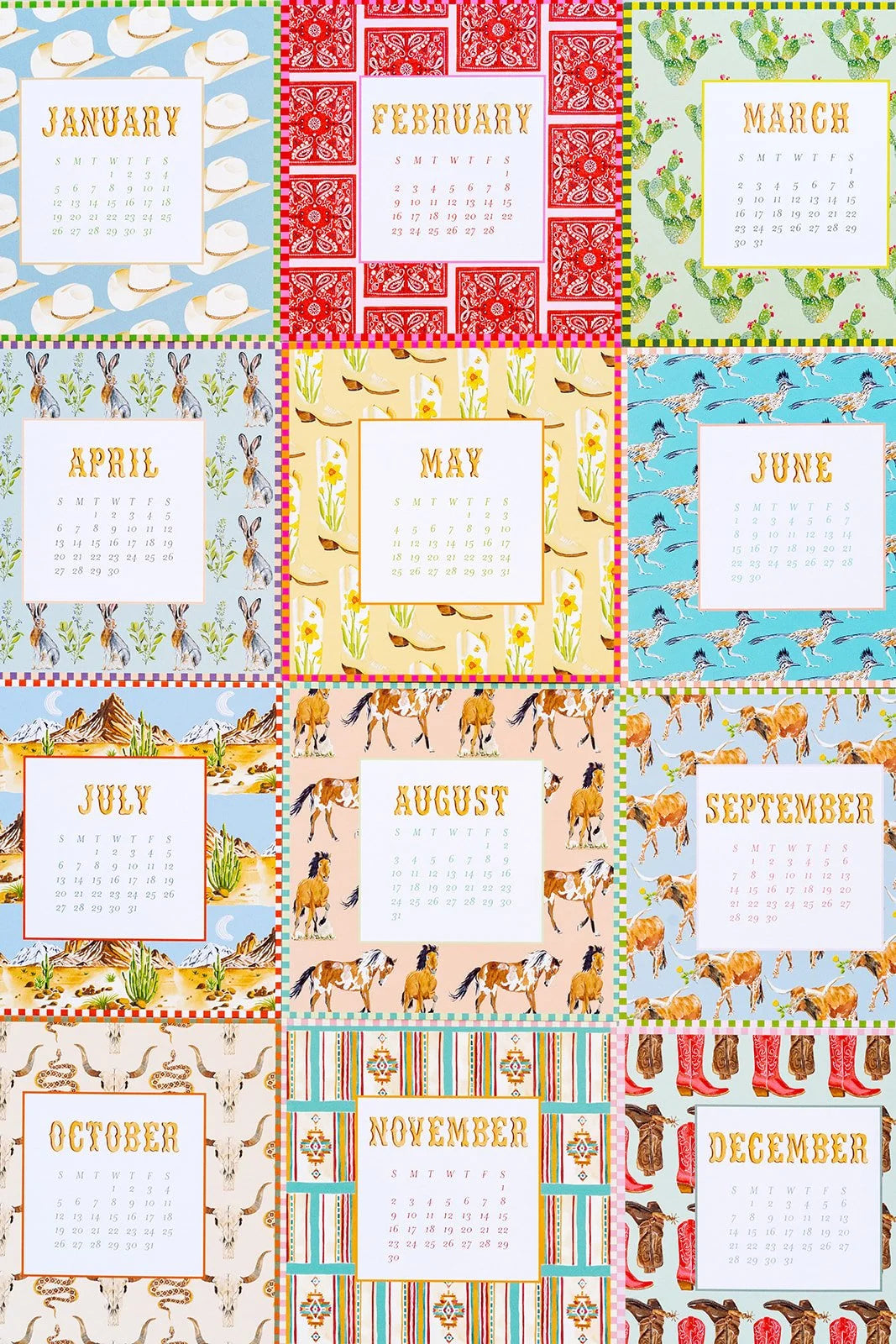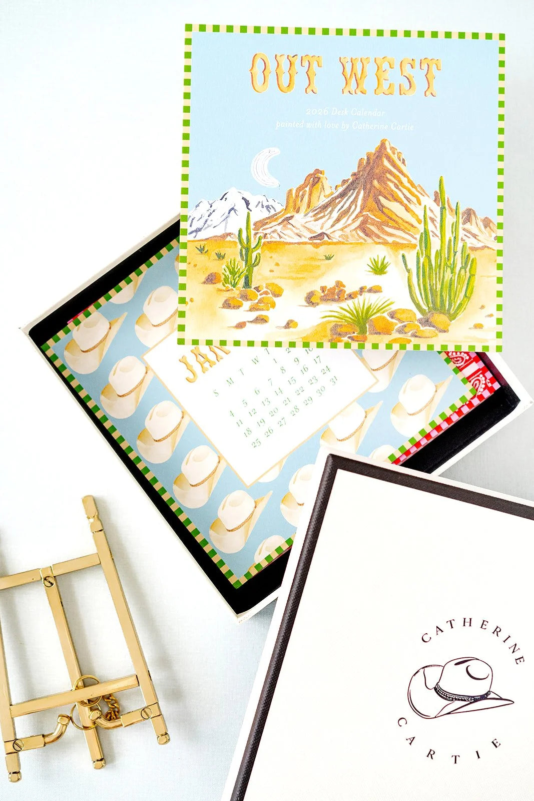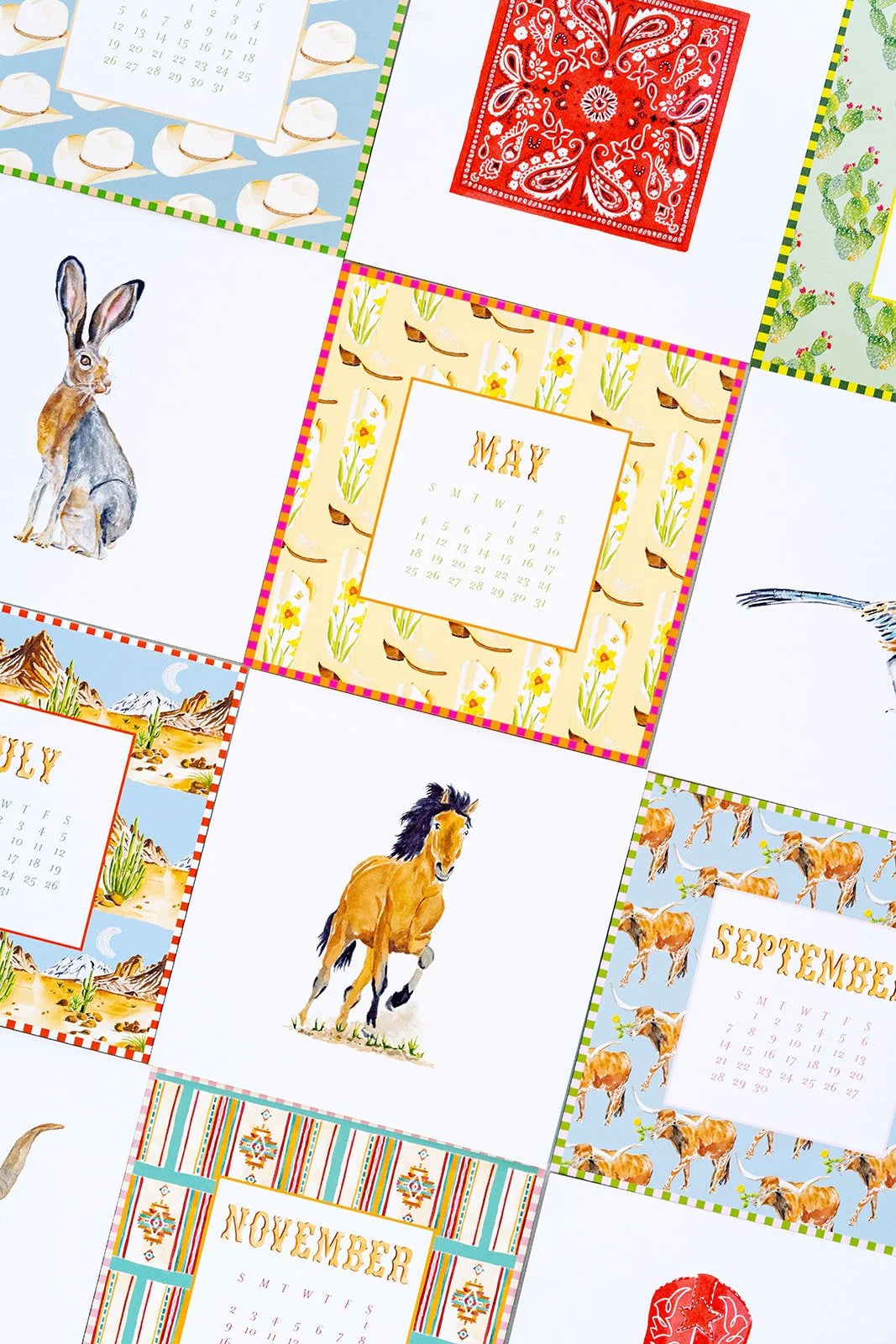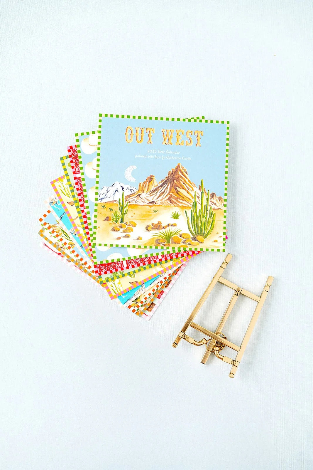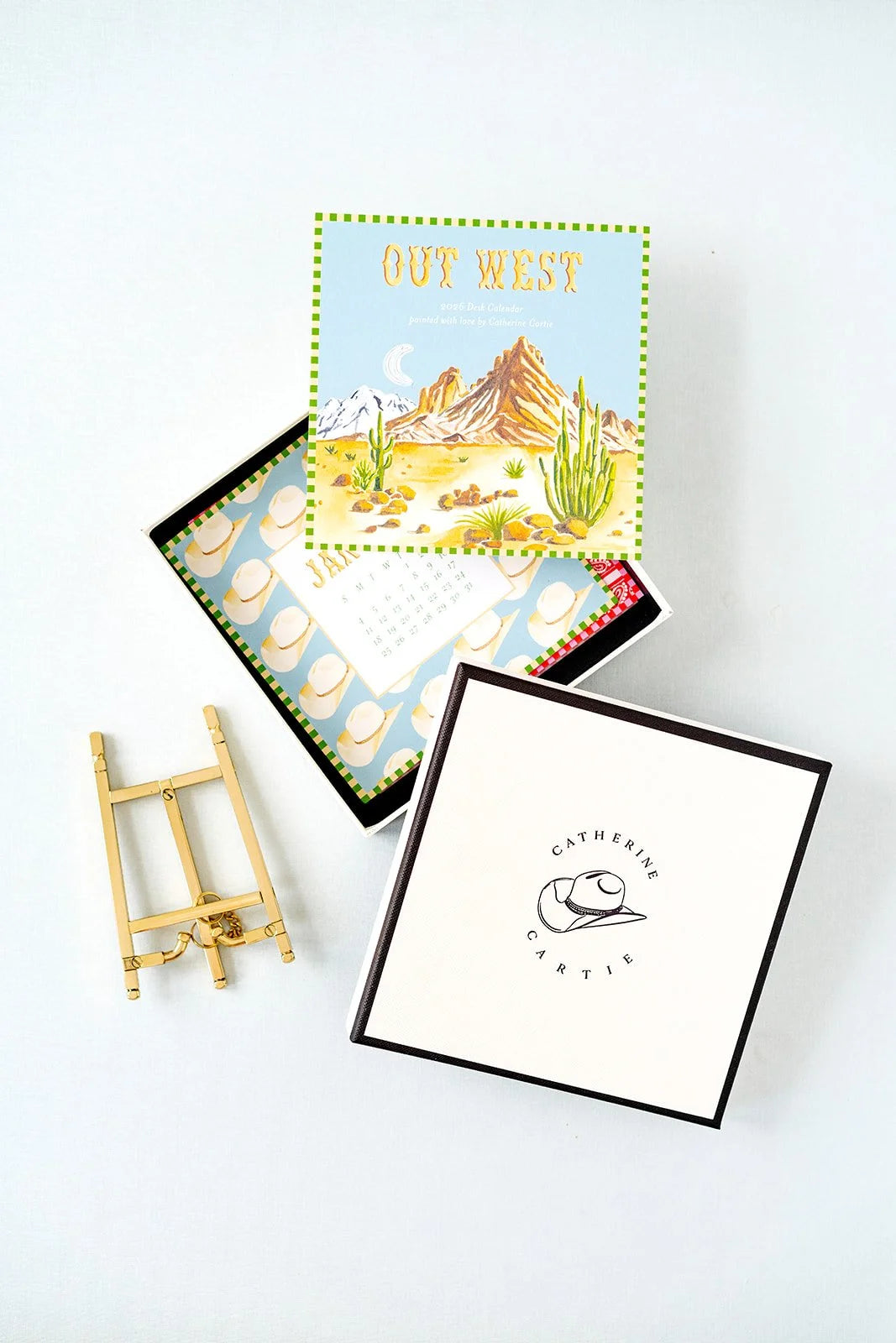 Calendar comes with a beautiful foil stamped gift box and double thick printed calendar cards with original art prints on the back sides. Includes brass easel stand.