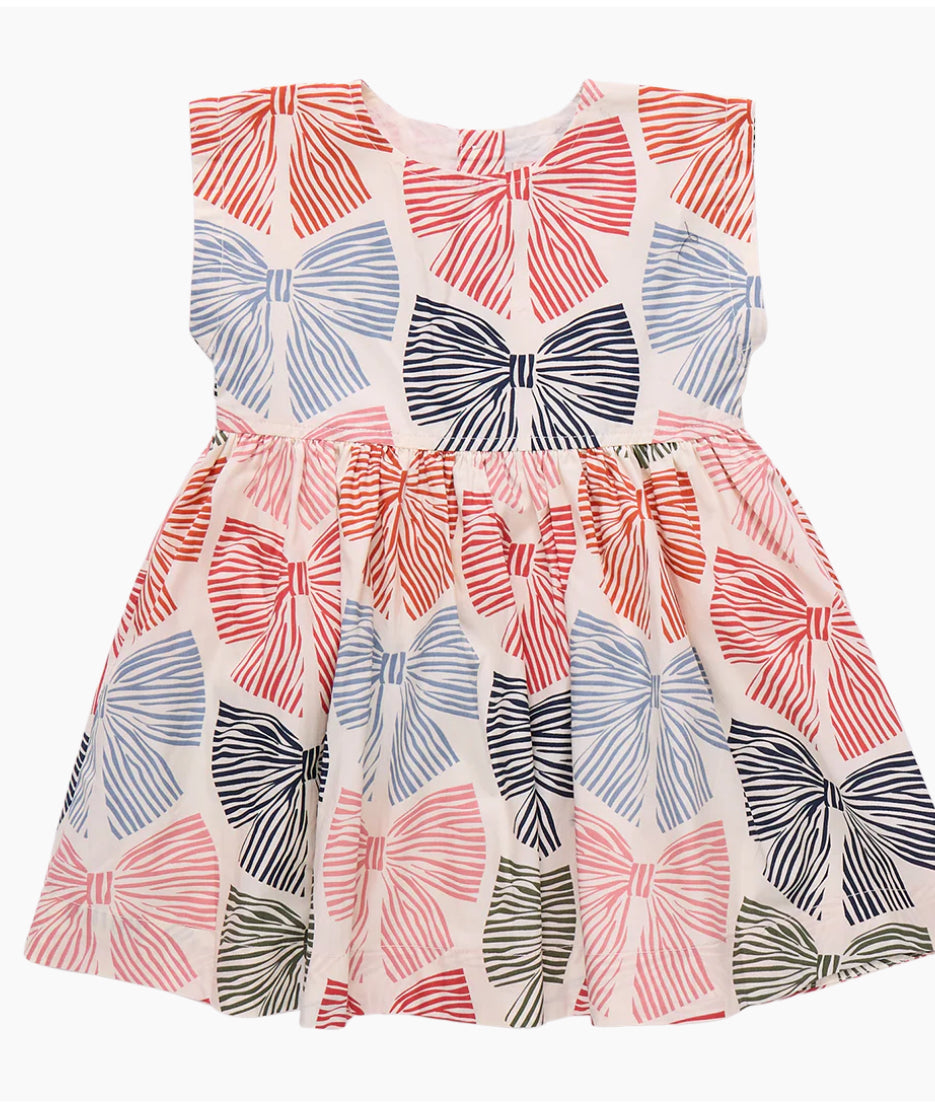 Girls Adaline Dress - Multi Striped Bows