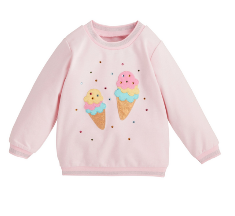 The Ice Cream Sparkle Toddler Sweatshirt is a delightful addition to your little one's wardrobe. Crafted from lightweight French terry fabric, this sweatshirt offers both comfort and style. It features charming appliqué details that add a playful touch, perfect for any toddler. The sparkly lurex neckline, cuffs, and waistband provide a touch of shimmer, making it ideal for special occasions or everyday wear. Designed for small toddlers aged 12-18 months, this sweatshirt ensures a cozy fit. Made from a blend of 60% cotton and 40% polyester, it combines softness with durability, ensuring it withstands the adventures of active toddlers.