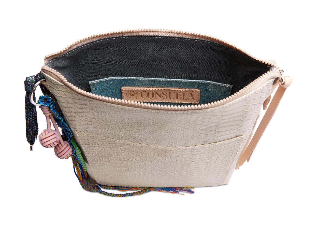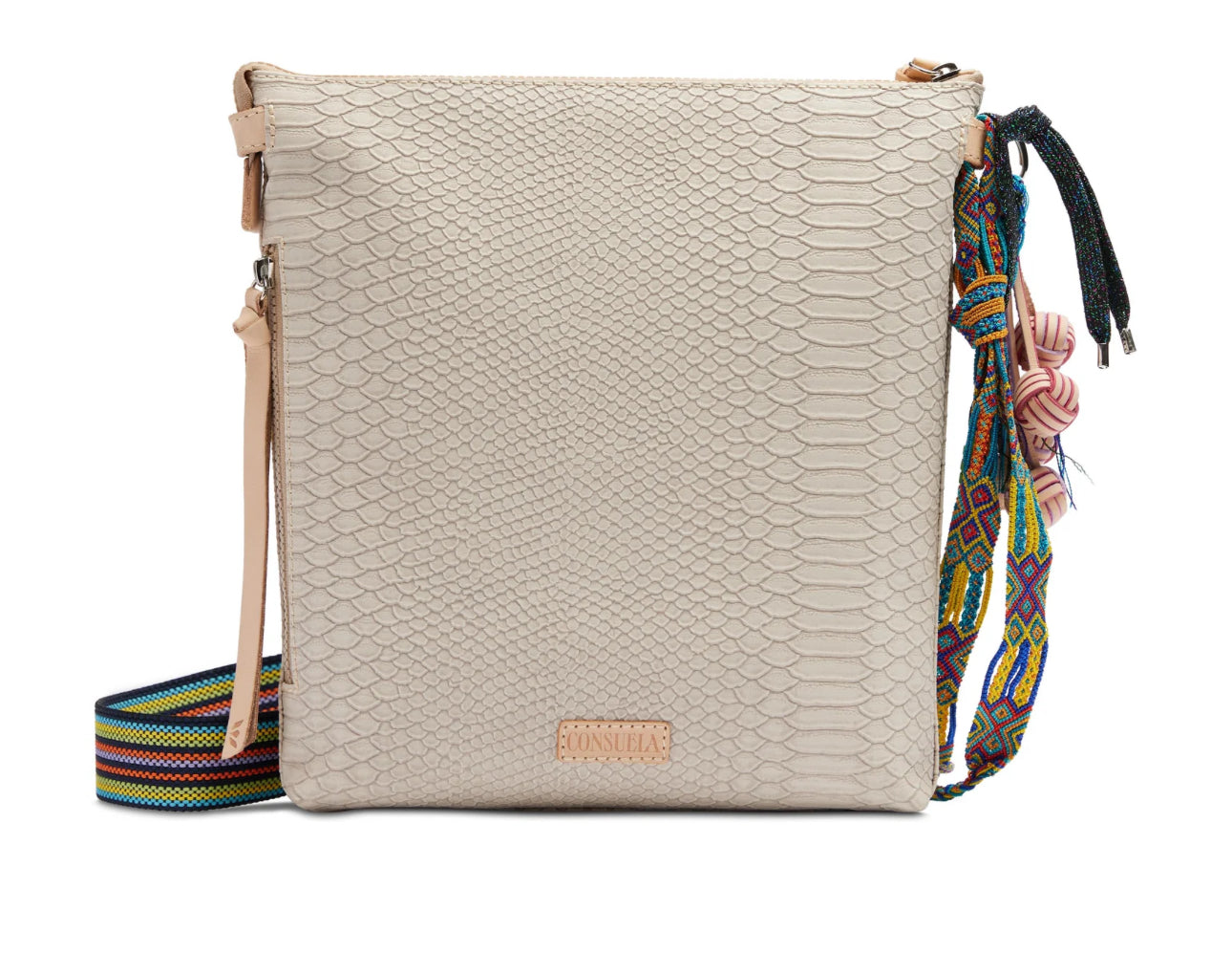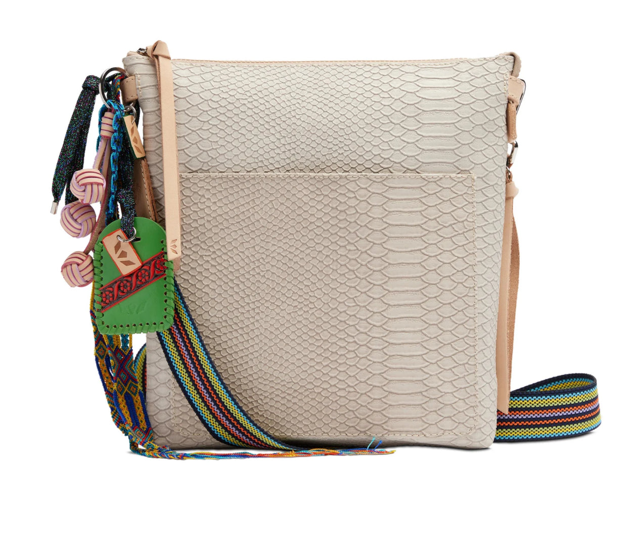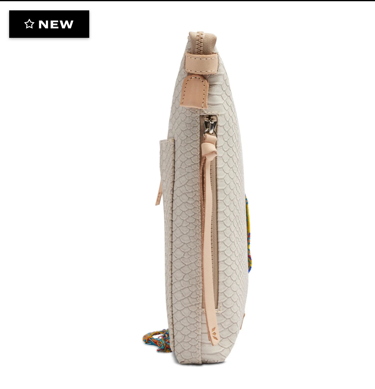 Our new, vertical crossbody has an extra front slip pocket and a side zip pocket to streamline your busy life in style. Zip it up and go!