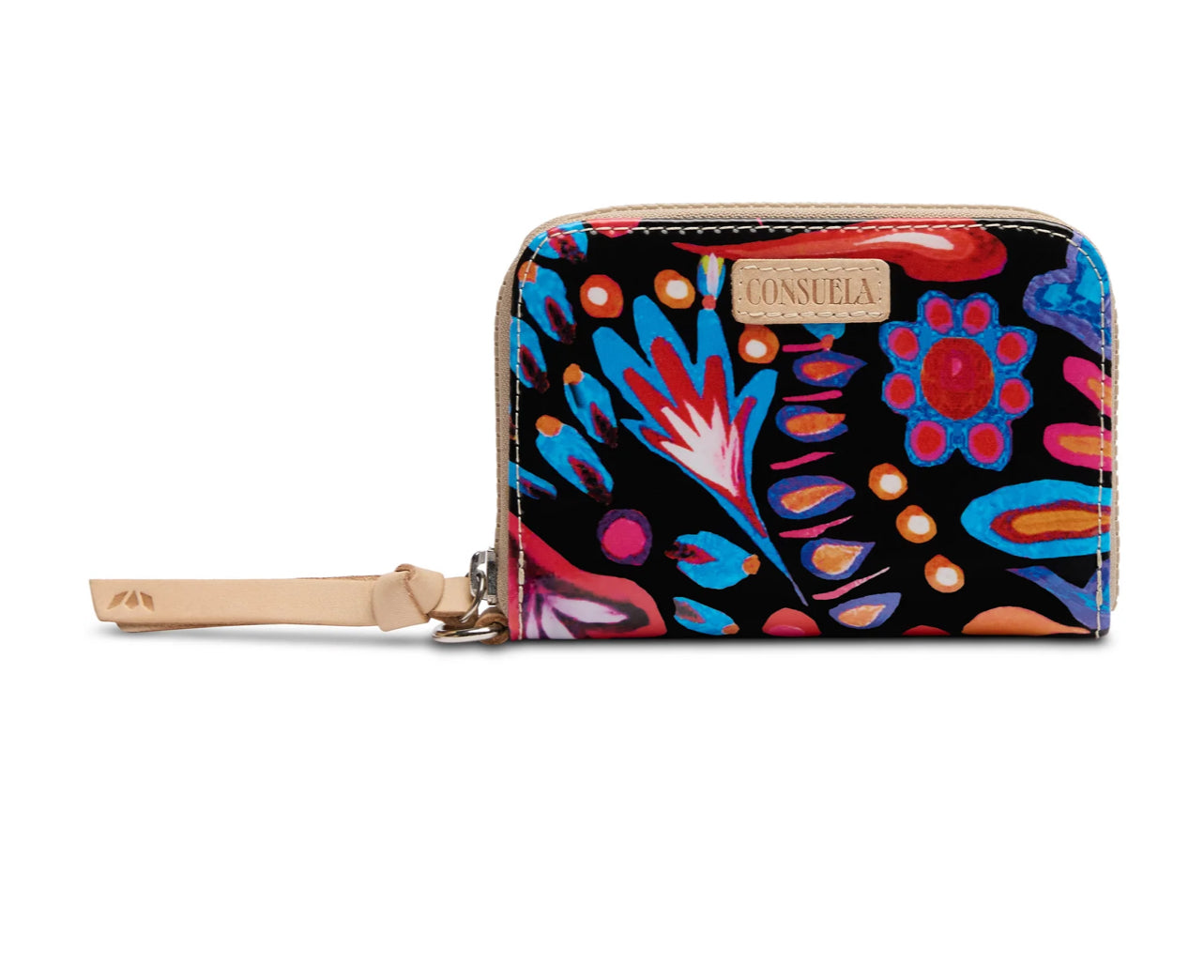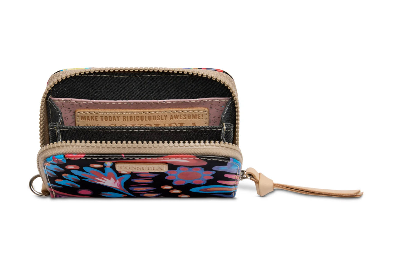 Say hello to Zippy, our newest wallet. This small, but mighty companion has both interior and exterior card slots with a zip closure. Use the D-ring to securely attach Zippy to your bag lanyard or combi wristlet.