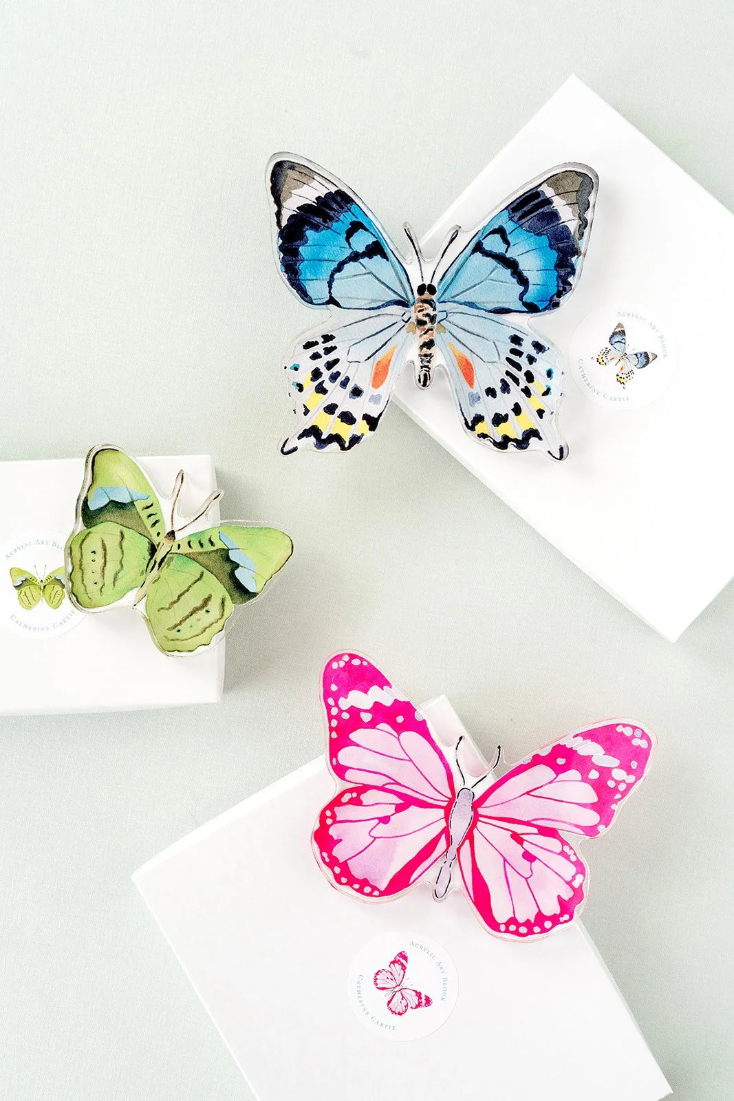 Clear acrylic butterfly die cut double sided art block.