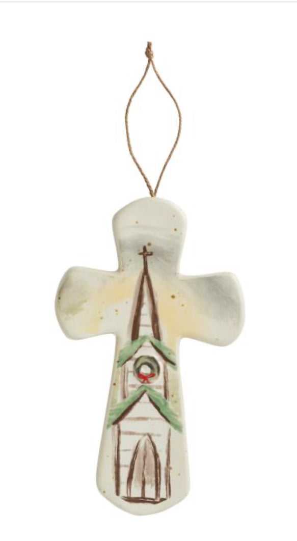 Ceramic Church Nativity Cross crafted from high-quality stoneware, this exquisite piece beautifully combines faith and artistry. Featuring a detailed nativity scene, it serves as a meaningful reminder of the Christmas story. The cross is designed with a rustic twine hanger, allowing for easy display on walls or doors. Additionally, it includes sawtooth hardware for secure mounting. Measuring 6 1/2" x 4 1/4", this compact yet impactful decoration is perfect for adding a touch of spiritual elegance to any room. Ideal for holiday decor or as a thoughtful gift, this nativity cross is a timeless addition to your home.