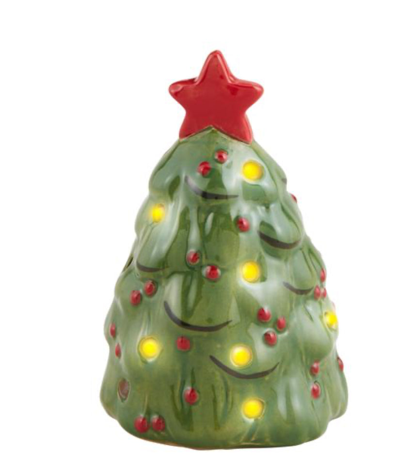 The Light-Up Tree Sitter is a beautifully crafted ceramic ornament that adds a touch of enchantment to any space. Designed with intricate pierced holes, this tree sitter allows the soft glow of LED light to pass through, creating a mesmerizing display of light and shadows. The included battery ensures that you can enjoy the magical ambiance right out of the box. Made from high-quality stoneware, this tree sitter is built to last and withstand the test of time. With its compact size of 4 1/2" x 2 3/4" diameter, it can easily be placed on a tabletop, mantel, or even nestled among the branches of your Christmas tree. Illuminate your home with the Light-Up Tree Sitter and let its radiant charm captivate all who behold it.