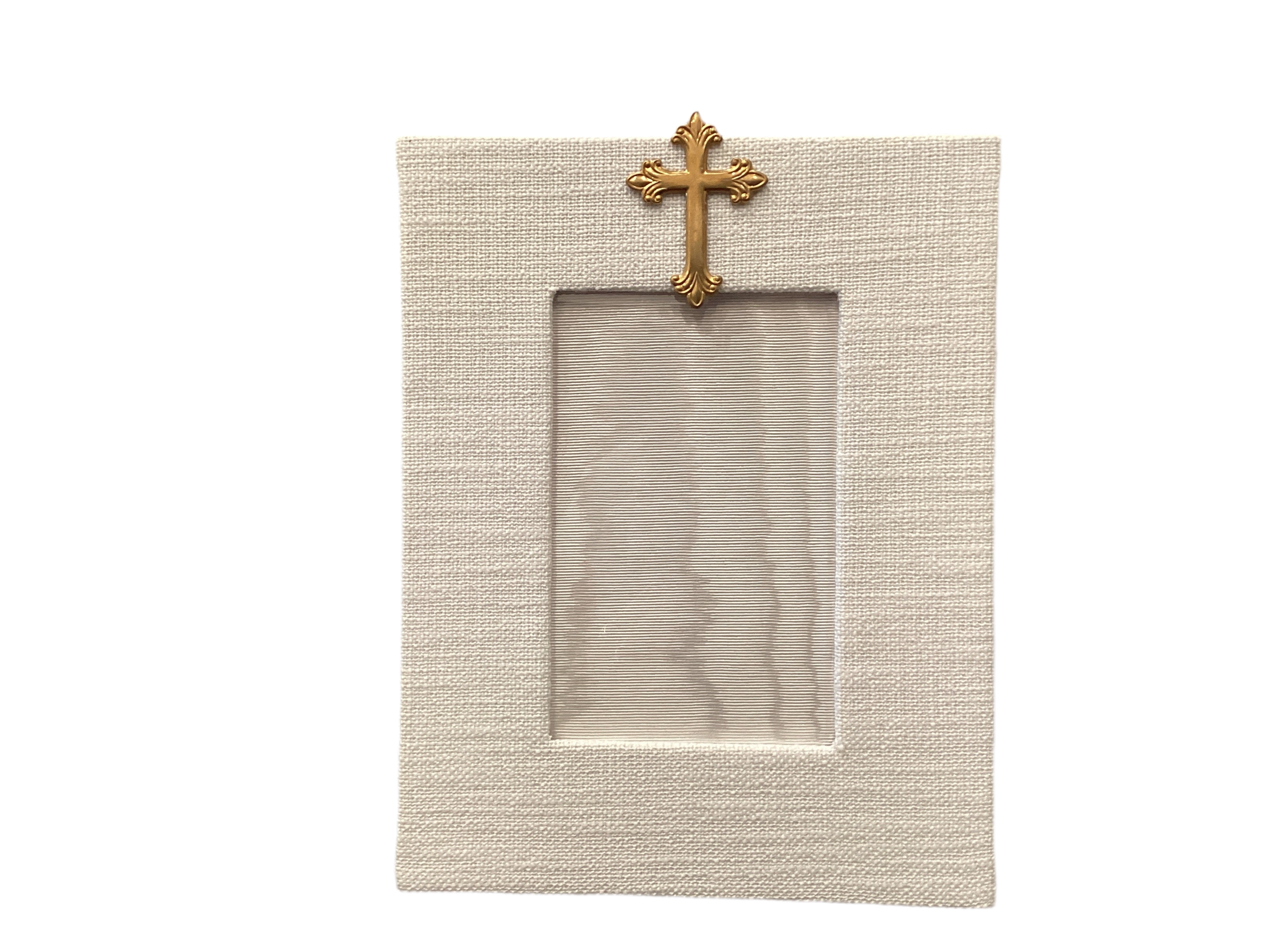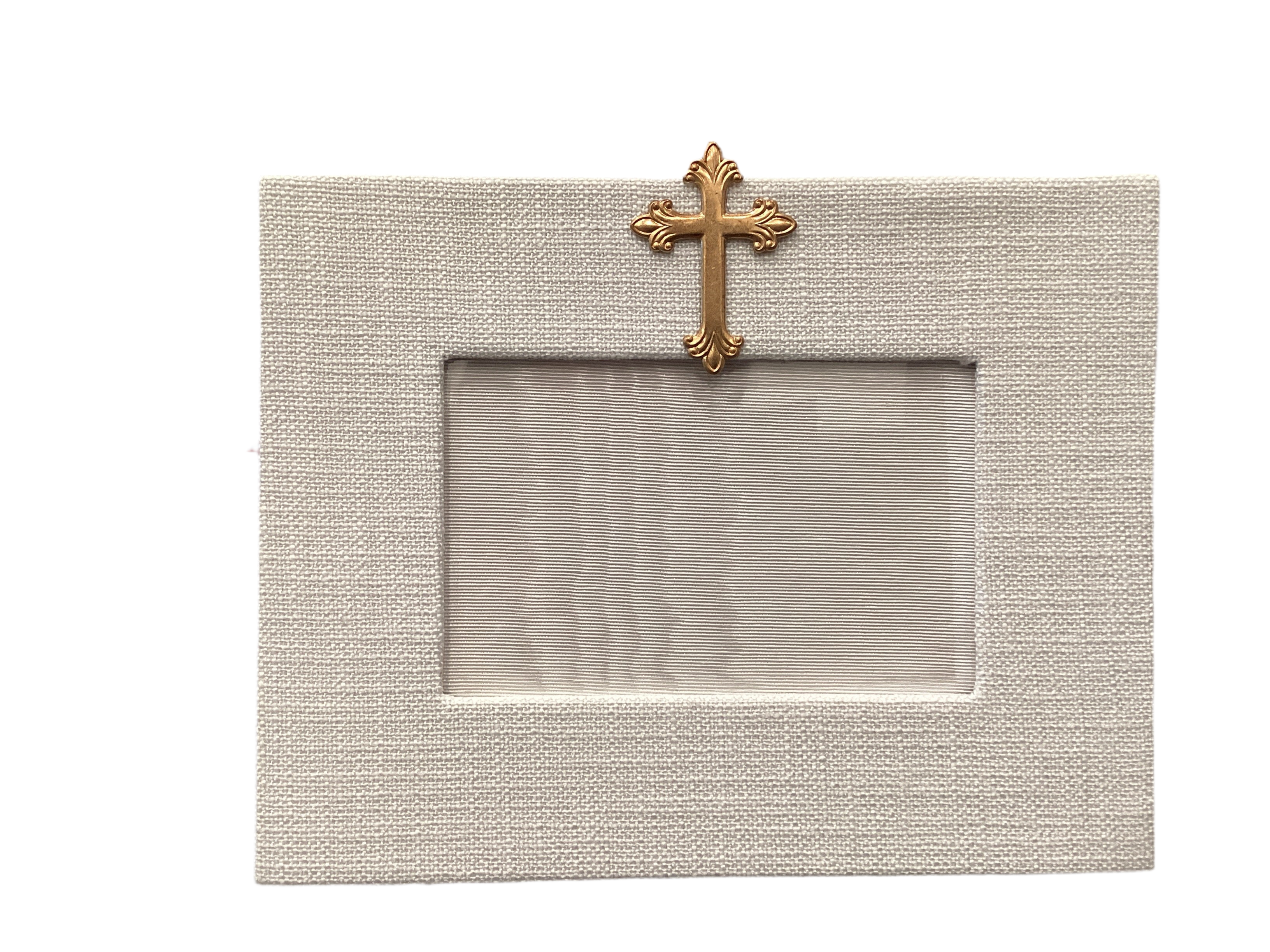 White Moire Frame with Gold Cross