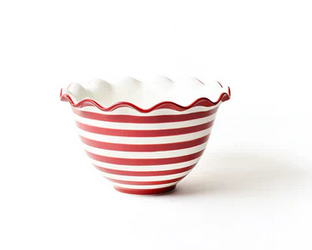 If you combine balanced and bold, you get our Red Stripe Ruffle Small Bowl. The preppy horizontal red stripes and iconic ruffle edge create a modern yet timeless dish perfect for any occasion. Pair this small bowl with other bright designs for a striking look, or let it accent the tablescape. This eye-catching design will quickly turn into your go-to holiday bowl.