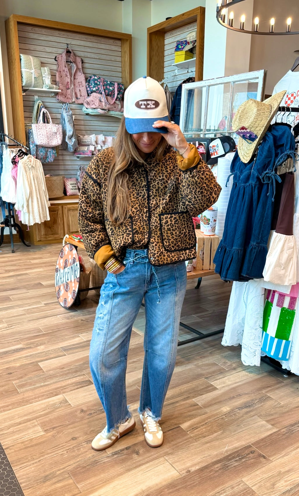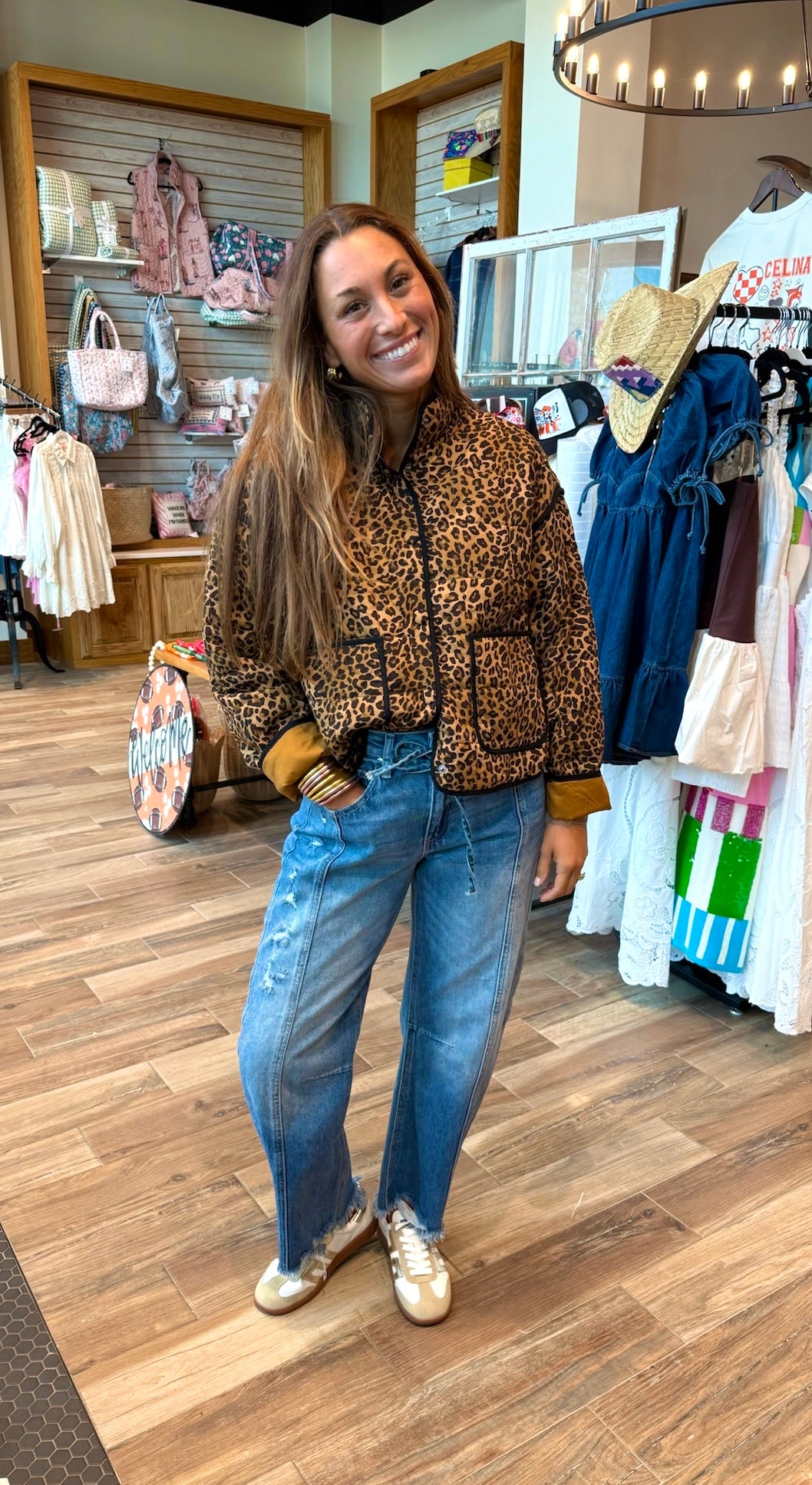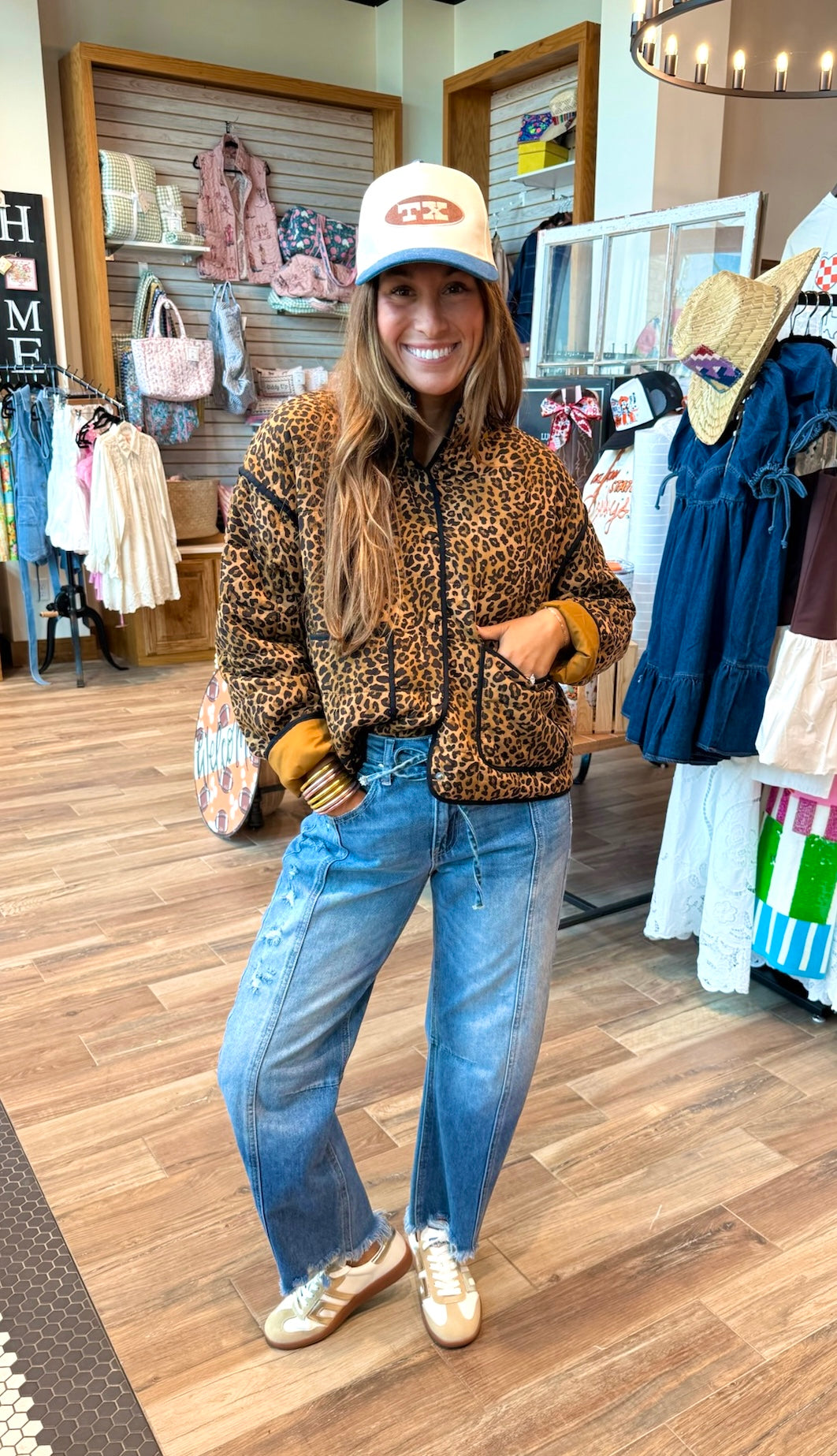 The Carmen leopard print quilted jacket is the perfect lightweight outerwear for fall! A lightweight knit quilted weight with the pattern that everyone wants this fall!