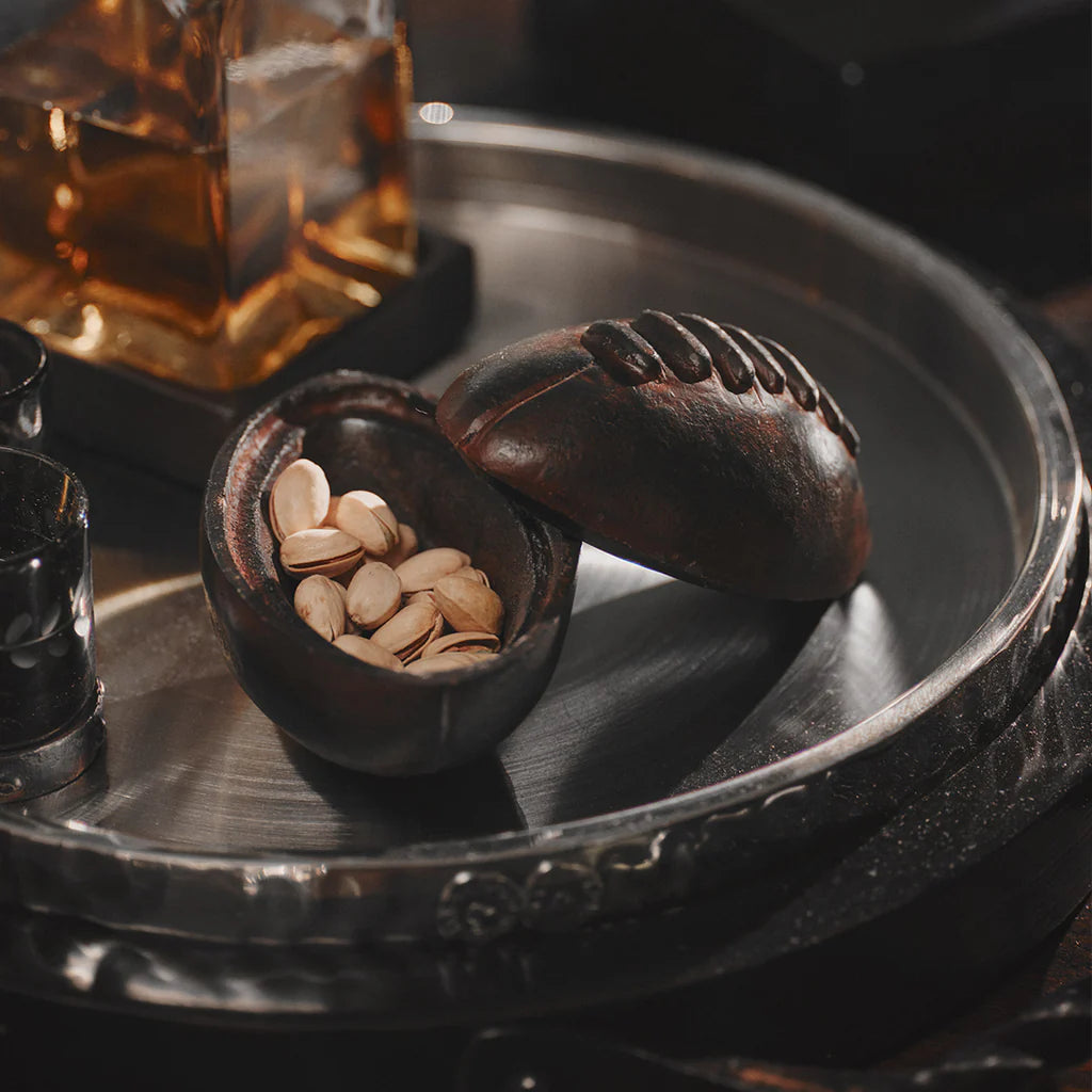 Wax cast iron football box with leather insert...for the perfect touchdown