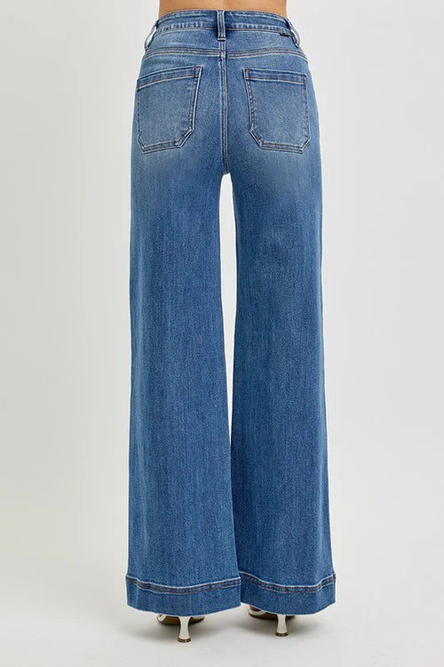 TUMMY CONTROL HIGH RISE ANKLE WIDE FRONT PINTUCK JEANS