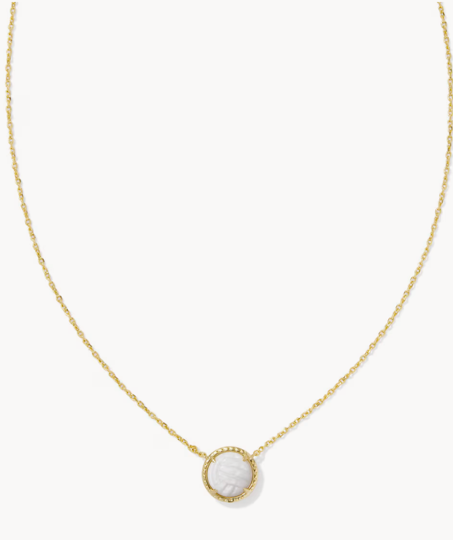 Volleyball Gold Short Pendant Necklace in White Mother-of-Pearl