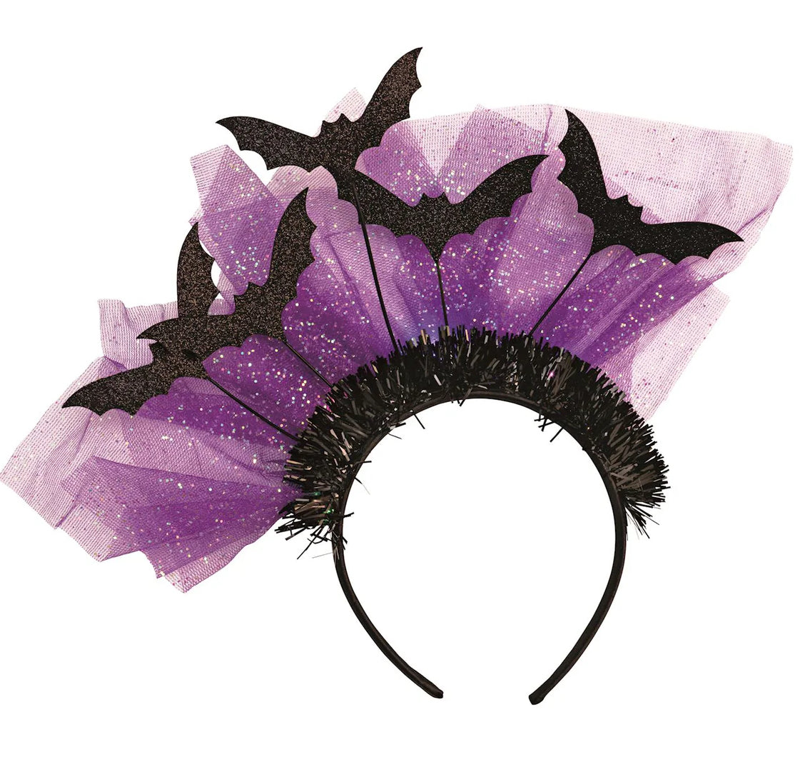This enchanting bat Headband features a whimsical design crafted from glittery felt and delicate tulle, making it the perfect addition to any costume or festive outfit. The headband is adorned with LED lights that create a captivating glow, ensuring you stand out at any spooky celebration. With batteries included, you can enjoy the magical illumination right out of the box. Designed to fit comfortably, this headband is suitable for ages 3 to 103, making it a fun and versatile choice for both kids and adults.