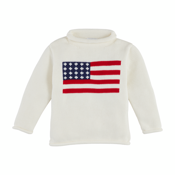 The Flag Rollneck Toddler Sweater is a cozy and stylish addition to your child's wardrobe. Crafted from soft, breathable 100% cotton yarn, this sweater ensures comfort and warmth for your little one. The rolled neck design adds a touch of classic charm, making it perfect for any occasion. Available in a large size suitable for toddlers aged 4T-5T, this sweater offers a comfortable fit that allows for easy movement and play. The high-quality cotton material is gentle on sensitive skin, making it an ideal choice for everyday wear. Whether for a casual outing or a special event, this sweater combines practicality with timeless style.