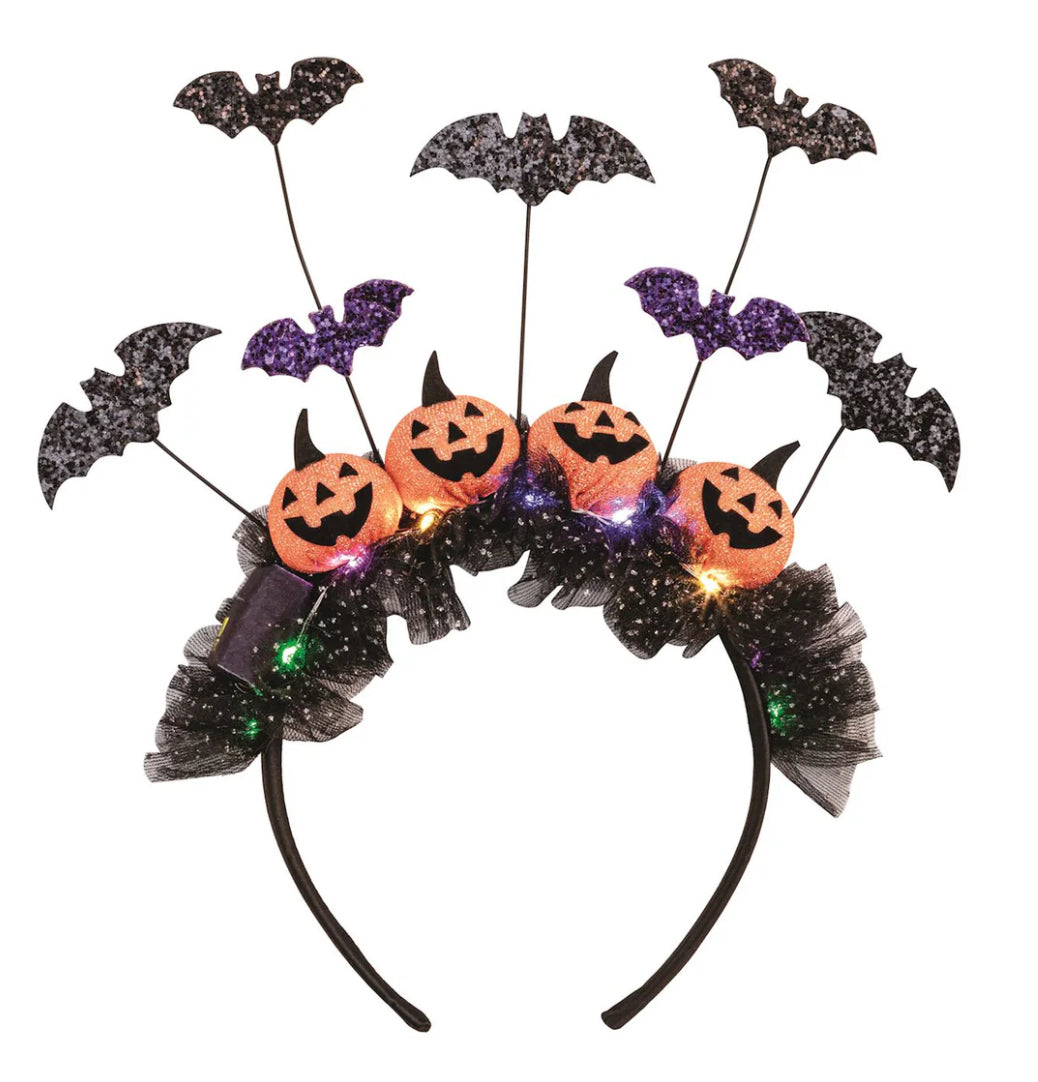 This enchanting Pumpkin Headband features a whimsical design crafted from glittery felt and delicate tulle, making it the perfect addition to any costume or festive outfit. The headband is adorned with LED lights that create a captivating glow, ensuring you stand out at any spooky celebration. With batteries included, you can enjoy the magical illumination right out of the box. Designed to fit comfortably, this headband is suitable for ages 3 to 103, making it a fun and versatile choice for both kids and adults.