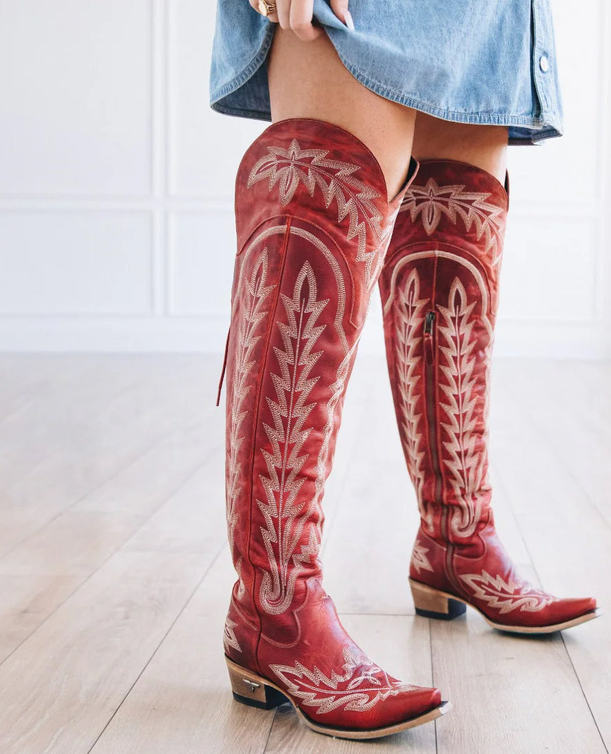 Sexy Over the Knee boot kicking classic retro stitch up all the notches.