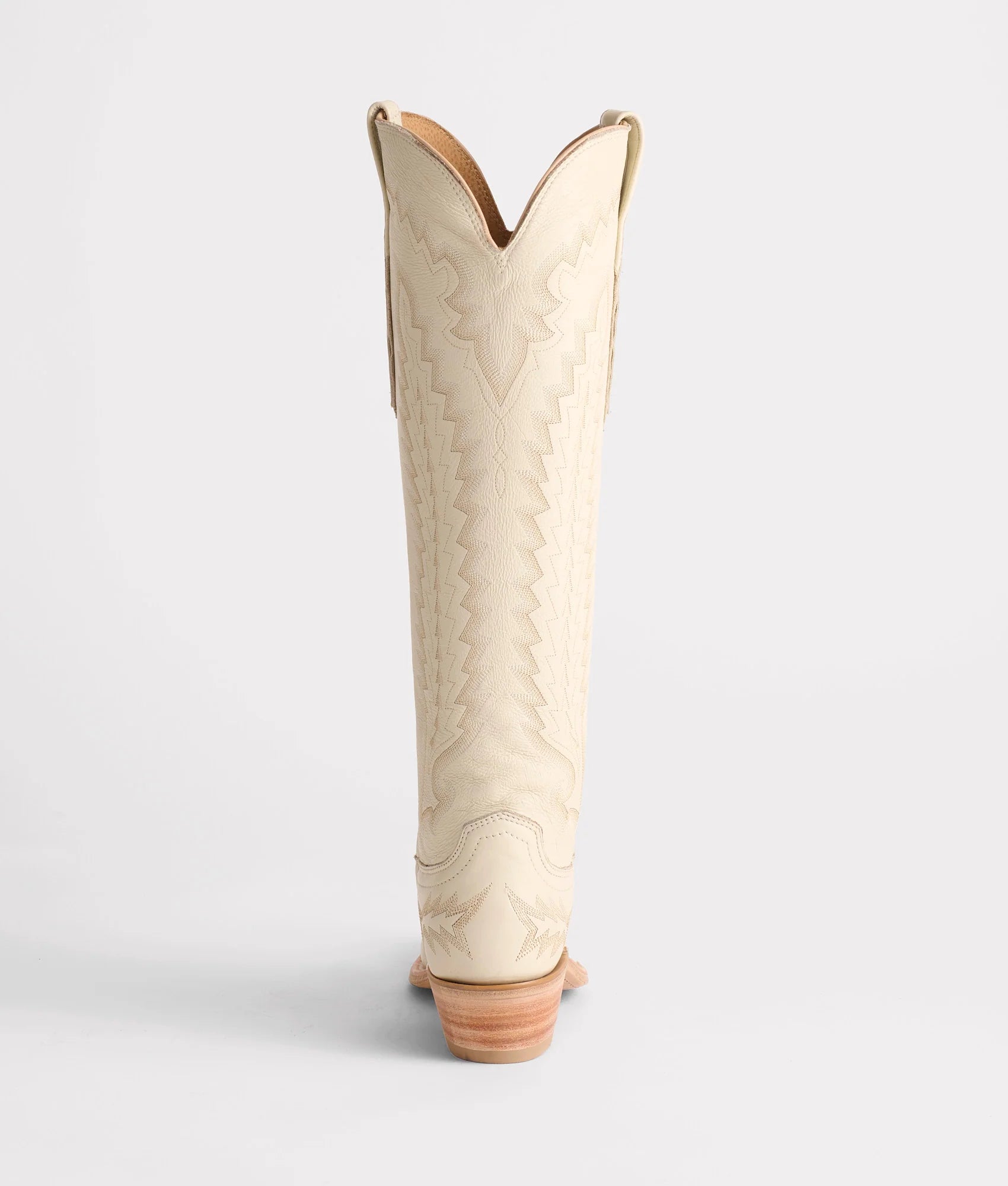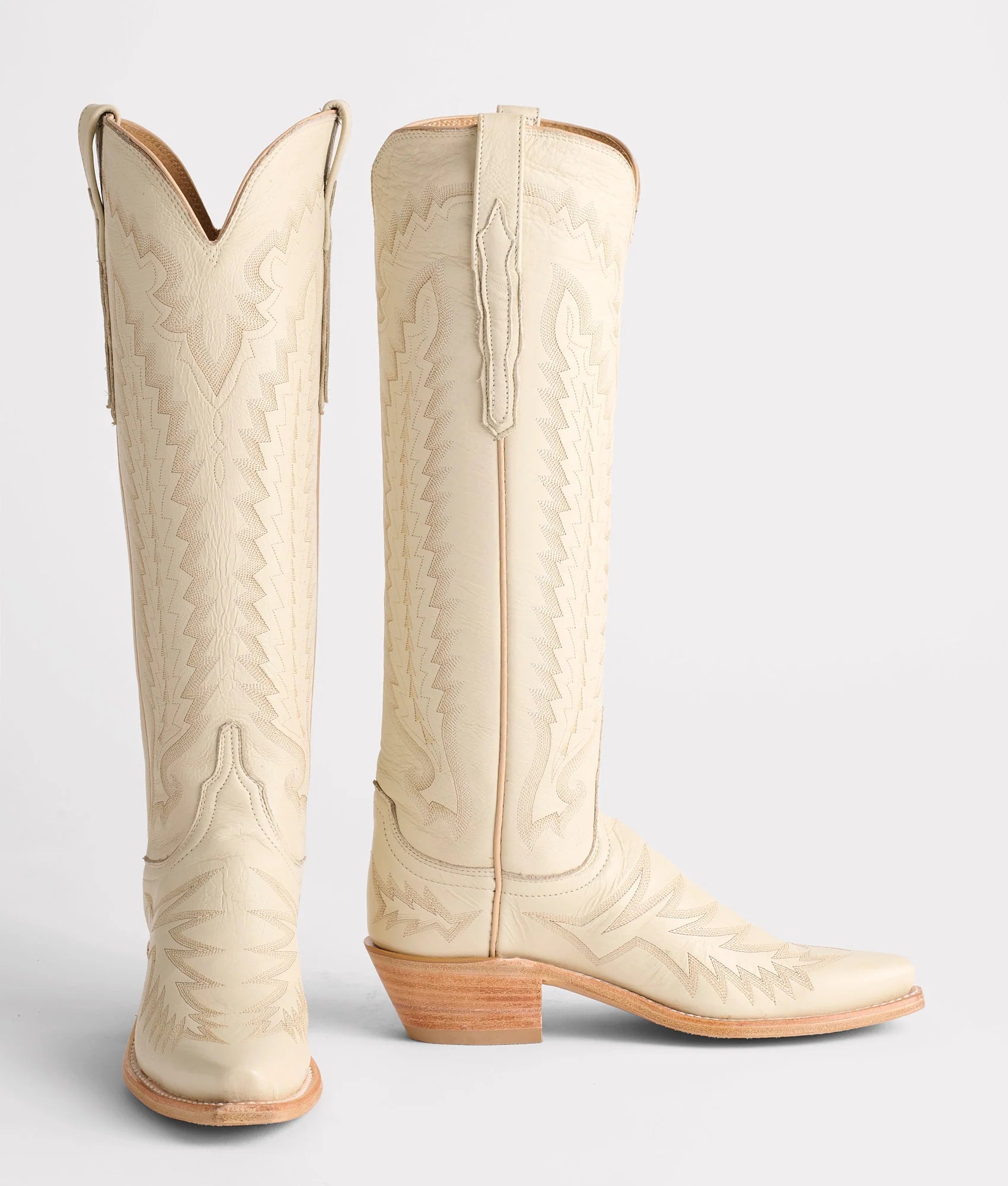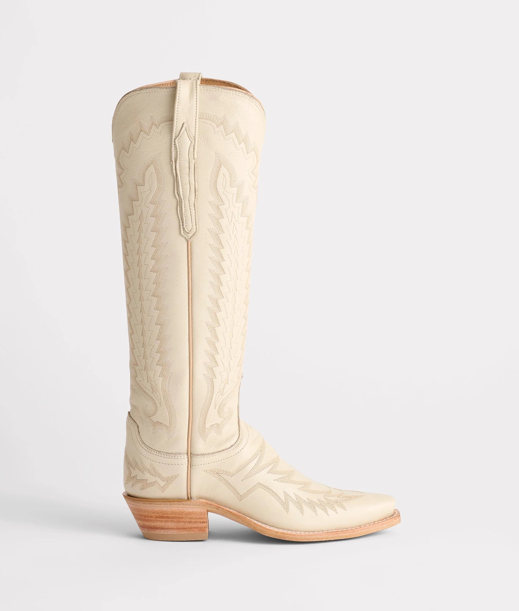 Our No. 1 bestselling boot for women, Priscilla walks an elegant line between timeless classic and cowgirl chic. The vintage-inspired Tioga stitch pattern harks back to yesteryear, but Priscilla is a boot built for today. This knee-skimming, pull-on silhouette handcrafted from supple Bovine leather deserves the spotlight under dresses and over jeans. Handmade in Texas.