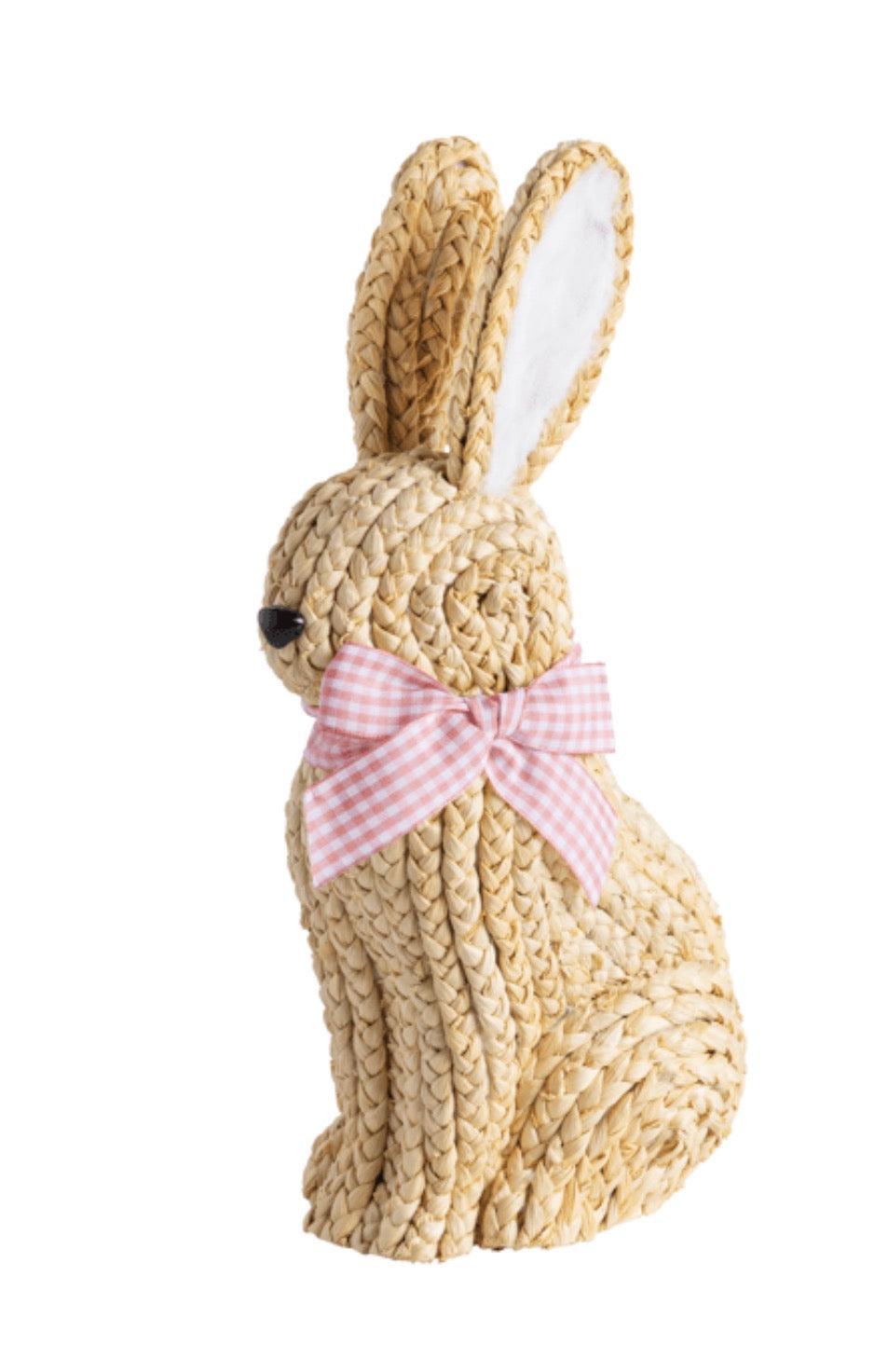This charming Pink Bow Woven Bunny Sitter is a delightful addition to any home decor, perfect for celebrating the spring season or adding a touch of whimsy to your space. Crafted from natural woven corn husk, this adorable bunny showcases intricate detailing that highlights its artisanal quality. The bunny is adorned with a lovely grosgrain ribbon bow in a soft pink hue, adding a playful and elegant touch to its rustic charm. Measuring 12 3/4 inches in height and 5 1/4 inches in width, it is an ideal size for displaying on mantels, shelves, or as a centerpiece on your dining table. Made from RAFFIA, this bunny sitter is not only a cute decorative piece but also a testament to sustainable craftsmanship. Whether you're looking to enhance your Easter decorations or simply want to bring a bit of nature indoors, this Pink Bow Woven Bunny Sitter is sure to enchant and delight.
