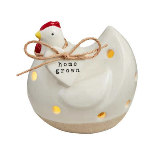 The Chicken Light-Up Sitter is a charming and whimsical addition to any home decor. Crafted from high-quality stoneware, this delightful piece is hand-painted with intricate details that bring the playful character of a chicken to life. Measuring 3 1/2" x 2 3/4", it is the perfect size to fit on a shelf, mantel, or tabletop. The sitter features LED lights that emit a warm, inviting glow, creating a cozy atmosphere in any room. Additionally, it entertains with realistic clucking chicken noises, adding a touch of fun and personality to your space. The product comes with a battery included, ensuring that it is ready to use right out of the box. Whether you're looking to enhance your kitchen, living room, or any other area, this Chicken Light-Up Sitter is sure to be a delightful conversation starter and a beloved decorative piece.