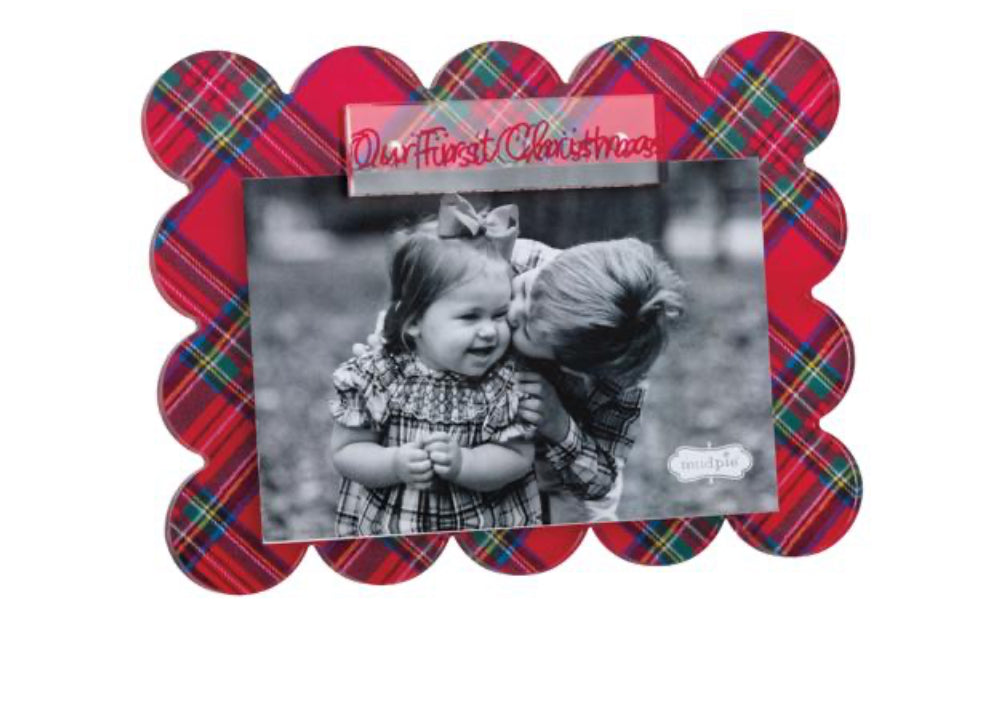 Celebrate the joy of your baby's first Christmas with this charming acrylic frame, designed to capture and display your precious memories. The magnetic tartan frame, adorned with a delightful scallop edge, adds a festive touch to your holiday decor. Its layered acrylic sentiment magnet securely holds a 4" x 6" photo, ensuring your cherished moments are beautifully showcased. The frame's easel back allows for easy placement on any tabletop or mantel, making it a perfect addition to your seasonal decorations. Measuring 6" x 8", this durable acrylic frame is a wonderful keepsake that will bring warmth and nostalgia to your home for years to come.