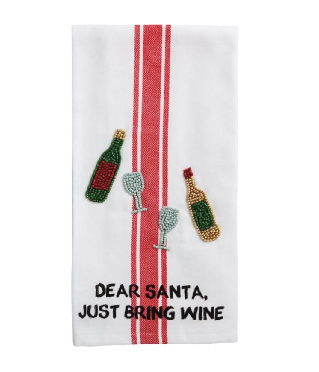 Santa Please Bring Wine Beaded Towel